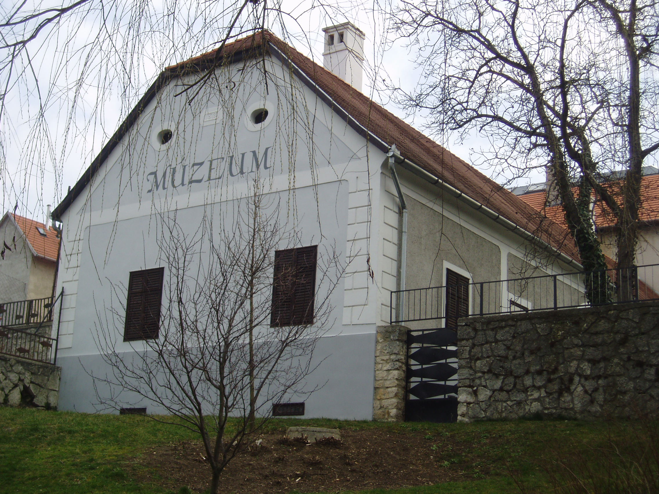 Nyilvános 962 | 1678 | Tapolca: Templom domb 8. Múzeum | A múzeum épülete, az ún. Kántorház - a város védett építészeti emléke - Tapolca történelmi városközpontjában, a Malom-tó fölötti Templom dombon található. Az épület magja 1773-ban épült iskolának és tanítói lakásnak. Mai küllemének meghatározó jellemzőit, boltíves tornácát az iskola 1813-as kibővítésekor kapta. Ide járt elemi iskolába az 1770-es évek elején a város nagy szülötte, Batsányi János költő. Az iskolában egészen 1884-ig folyt oktatás, később pedig a mindenkori r. k. kántortanító lakott benne. Az épületet 1979/80-ban újíttatta fel a város, s benne Tapolca múzeumát helyezte el. A múzeumban jelenleg iskolatörténeti kiállítás és Batsányi János életét és korát bemutató kiállítás látható (lásd a következő képeket). A felvétel 2007 februárjában készült. Felh. irod.: Látnivalók Veszprém megyében. Miskolc, Well-PRess, 2000 Hangodi László: Múltbanéző - kiállításvezető a Tapolcai Városi Múzeum tárlataihoz. Tapolca, 2006 |