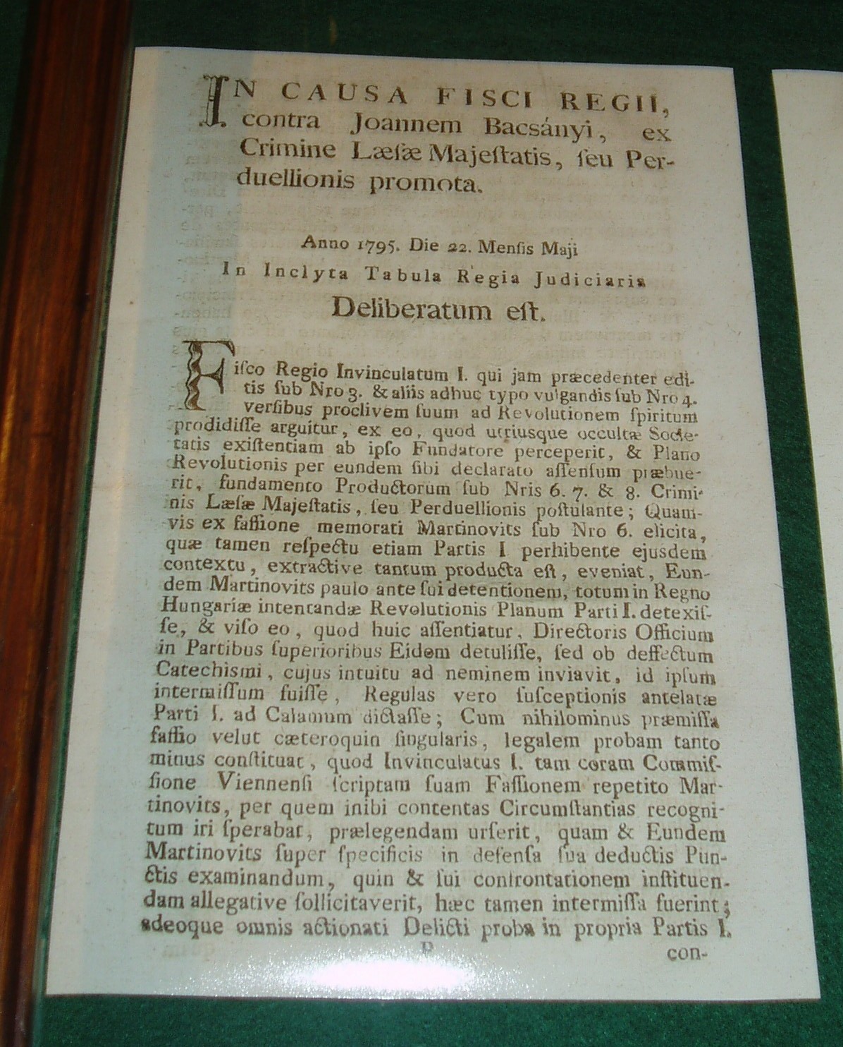 Nyilvános 1419 | 2076 | Tapolca: Templom domb 8. Múzeum | A múzeum épülete, az ún. Kántorház - a város védett építészeti emléke - Tapolca történelmi városközpontjában, a Malom-tó fölötti Templom dombon található. Ide járt elemi iskolába az 1770-es évek elején város nagy szülötte, Batsányi János költő. Részlet a Batsányi Emlékkiállításról: az 1795-ben Pesten latin nyelven kiadott, a Martinovics-összeesküvésben részt vevők vádiratából a Batsányira vonatkozó oldalak. A felvétel 2007 februárjában készült. Felh. irod.: Látnivalók Veszprém megyében. Miskolc, Well-PRess, 2000 Hangodi László: Múltbanéző - kiállításvezető a Tapolcai Városi Múzeum tárlataihoz. Tapolca, 2006 |