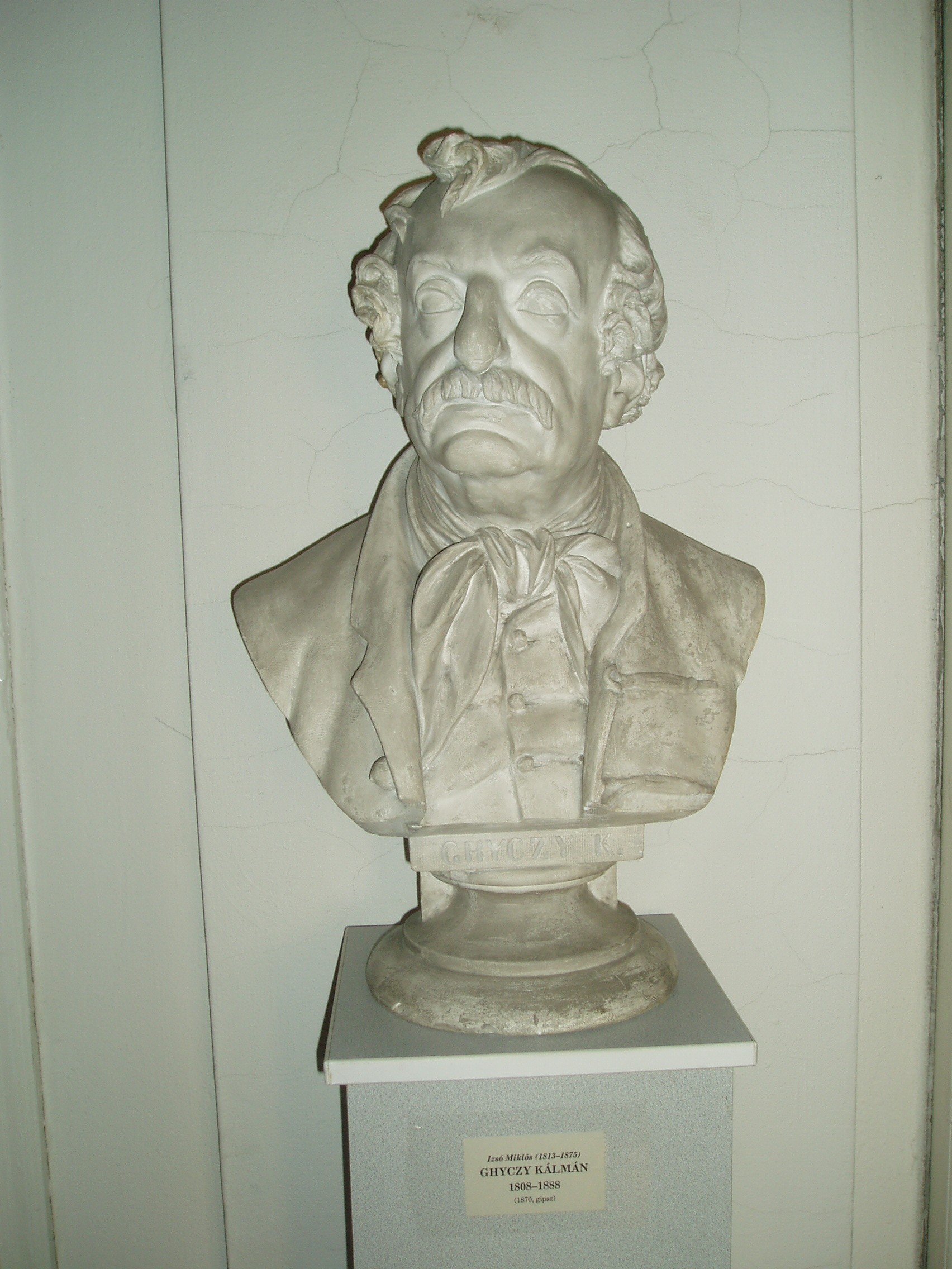 Nyilvános 896 | 1613 | Pápa, Március 15. tér 9. Pápai Református Kollégium Gimnáziuma | A híres pápai Református Kollégium első épülete 1531 és 1752 között a mai Ruszek közben, a Lábasház épületének helyén állott. 1752-ben - Mária Terézia rendeletének következtében, amely megszüntette a szabad vallásgyakorlást - harminckét évig csak a közeli Adásztevelen működhetett. 1784-ben, II. József türelmi rendeletének köszönhetően térhetett vissza az iskola Pápára, s hamarosan felépült a ma Ókollégiumként ismert épület (lásd: Pápa, Petőfi u. 13.), amelyben 1794-ben indulhatott meg az oktatás. Az intézmény 1857-ig működött ott, ekkor átköltözött a Március 15. tér 13-15. számú házba, az ún. Nátus-ba, majd 1895-ben utolsó végleles helyére, ide, a Március 15. tér 9. számú monumentális új épületbe. A képen - a könyvtár előterében - Ghyczy Kálmán (1808-1888) jogtudós, pénzügyminiszter fehér márvány mellszobra látható, Izsó Miklós 1870-ben készült alkotása. A fénykép 2007 áprilisában készült. Felh. irod.: Németh Adél - Szabó Lajos: Pápa. Bp. Panoráma, 1989 http://refi-papa.hu |