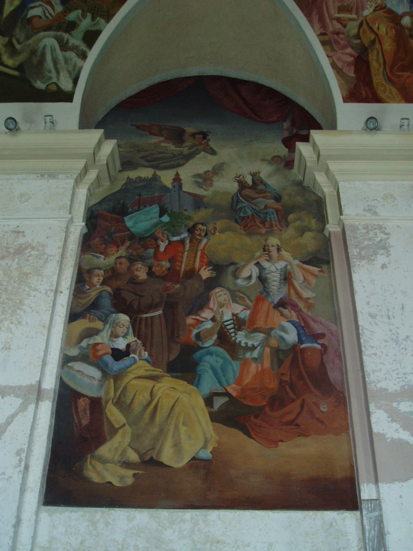 Nyilvános 1390 | 2444 | Sümeg, Szent István tér 7. Ferences templom | A ferences kolostor és templom épülettömbje a vár után (lásd: Sümeg, Vár) Sümeg legrégibb műemléke. A ferences atyákat a XVII. közepén Széchenyi György püspök hozta Sümegre a török elől idemenekült lakosság kedvéért. 1649 körül először az egyhajós, akkor még torony nélküli templom épült meg. A hozzá tartozó vastag falú, erődítmény jellegű kolostor néhány évvel később lett készen. A templom tornya és két oldalkápolnája 1724-33 között épült. Kiemelkedő értéket képvisel a két oldalkápolna kovácsoltvas kapuzata. (Sajnos, a templomot kívülről nem tudtam lefényképezni, szinte teljesen eltakarják a lombok. Talán majd egyszer télen... K. K.) Itt működött a XVII. századi ellenreformáció egyik fontos dunántúli központja. A szerzetesek járták a végvárakat és falvakat, s fejtettek ki térítő, illetve szociális tevékenységet, a kolostorban pedig messze vidéken híres hitvitákat tartottak. A lakosság kedvelte a ferences atyákat, akik a szegénység vállalása mellett a tudomány művelői, egyes tagjaik pedig a haza védelmében vitéz kardforgatók voltak. A templomot 1699 óta kegytemplomként is számon tartják. Ebben az évben ugyanis itt gyógyult meg a bécsi Berghoffer Mária, s a gyógyulást a templom főoltárán elhelyezett, a XVI. század elején faragott Pieta-szobornak tulajdonították. A képen e csodás gyógyulást ábrázoló újabb kori festmény látható. E szobor, mely a XVIII. században lebontott Szent Katalin-templomból származik, tűzvész következtében többször is megsérült, s helyreállításra szorult. A fénykép 2007 júniusában készült. Felh. irod.: Koppány Tibor - Kozák Károly: Sümeg útikalauz. Veszprém, Idegenforgalmi Hivatal, 1965 Látnivalók Veszprém megyében. Miskolc, Well-PRess, 2004 Sümegi kalauz. Sümeg, Sümegi Fórum alapítvány, 1993 Hőgyész László: Sümeg évszázadai. Veszprém, 1989 |