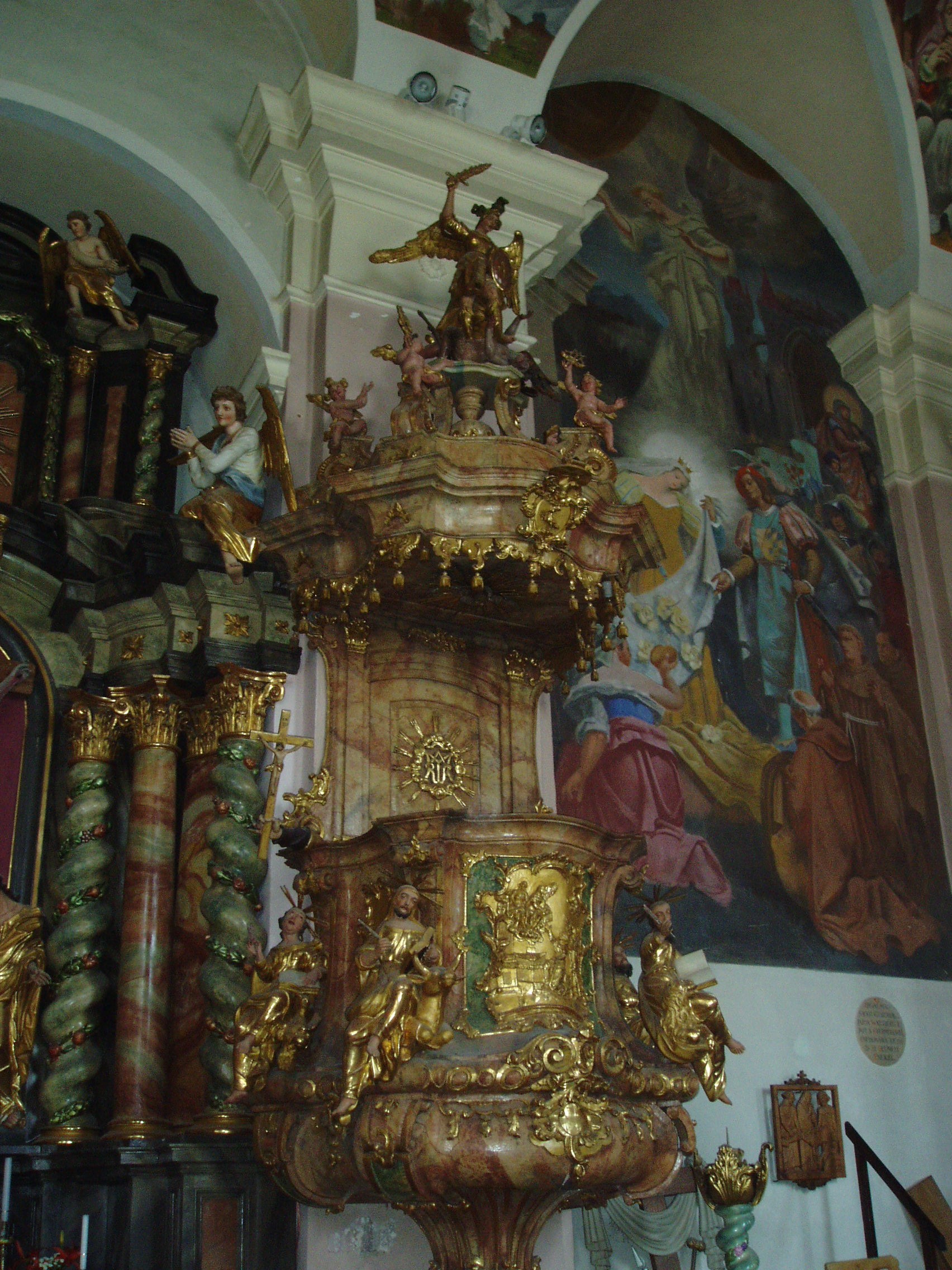 Nyilvános 1354 | 1835 | Sümeg, Szent István tér 7. Ferences templom | A ferences kolostor és templom épülettömbje a vár után (lásd: Sümeg, Vár) Sümeg legrégibb műemléke. A ferences atyákat a XVII. közepén Széchenyi György püspök hozta Sümegre a török elől idemenekült lakosság kedvéért. 1649 körül először az egyhajós, akkor még torony nélküli templom épült meg. A hozzá tartozó vastag falú, erődítmény jellegű kolostor néhány évvel később lett készen. A templom tornya és két oldalkápolnája 1724-33 között épült. (Sajnos, a templomot kívülről nem tudtam lefényképezni, szinte teljesen eltakarják a lombok. Talán majd egyszer télen... K. K.) A faragott és gazdagon aranyozott főoltár mellett a templombelső egyik nagy értéke a Padányi Bíró Márton püspök által 1760-ban faragtatott szószék, amelyet Szent Mihály arkangyal és a négy evangélista aranyozott szobrai díszítenek. A fénykép 2007 júniusában készült. Felh. irod.: Koppány Tibor - Kozák Károly: Sümeg útikalauz. Veszprém, Idegenforgalmi Hivatal, 1965 Látnivalók Veszprém megyében. Miskolc, Well-PRess, 2004 Sümegi kalauz. Sümeg, Sümegi Fórum alapítvány, 1993 Hőgyész László: Sümeg évszázadai. Veszprém, 1989 |