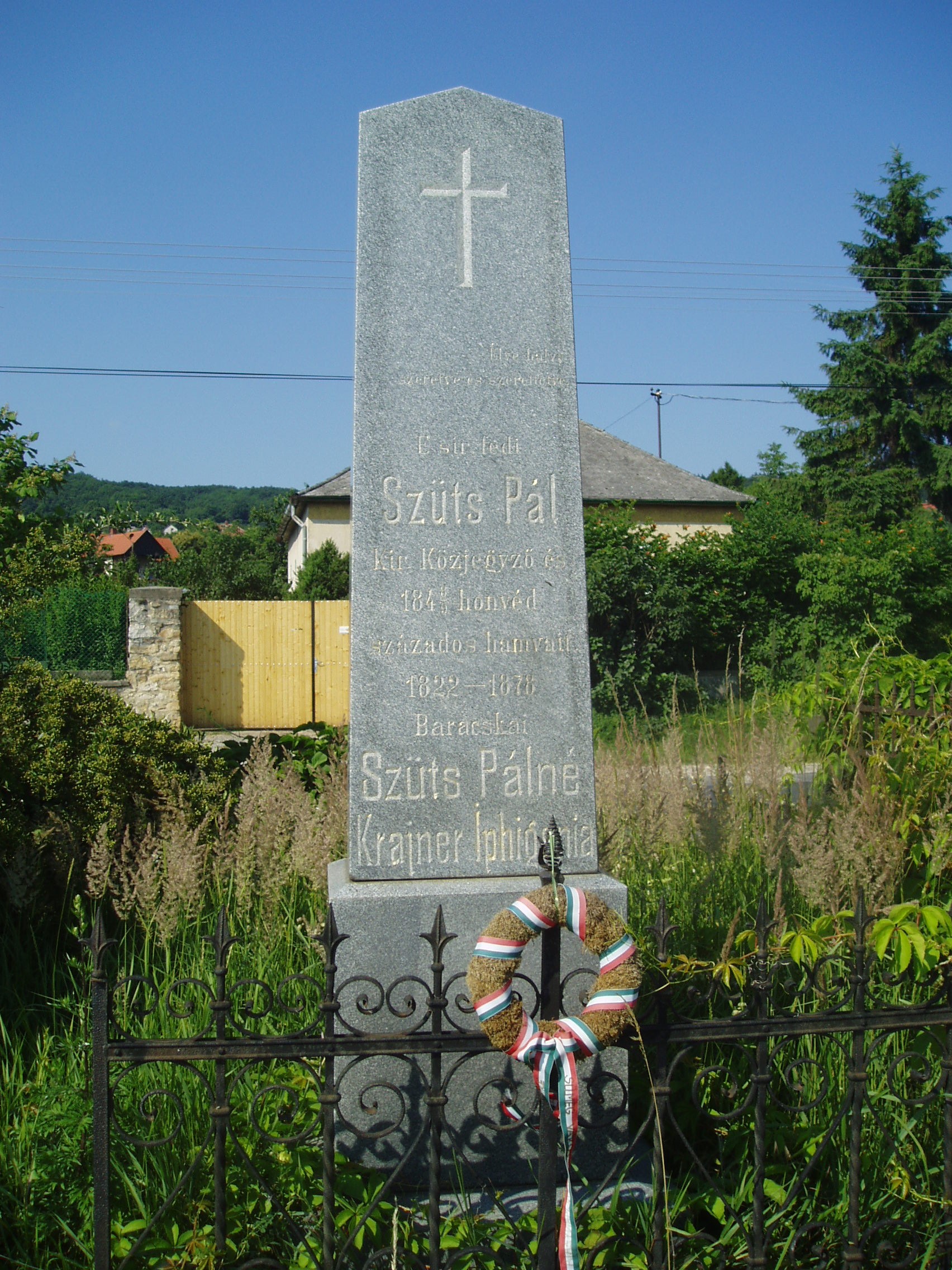 Nyilvános 1361 | 2149 | Sümeg, Temető. Szűts Pál sírja | Sümeg délkeleti határában, a Tapolcára vezető út mellett emelkedő lankás domboldalon találjuk a város köztemetőjét. Helyét még Bíró Márton püspök jelölte ki; jelentősebb számban a XIX. század eleje óta kezdtek ide temetkezni. A temetődomb tetején áll az 1816-ban épített, későbarokk stílusú temetőkápolna. Körülötte a sümegi élet utolsó két évszázada szinte valamennyi híres személyiségének sírja fellelhető. Itt nyugszik Szűts Pál (1822-1878) ügyvéd, az 1848/49-es szabadságharc századosa. Alakulatával Perczel tábornok drávai hadtestében, illetve a Központi Mozgó Seregnél harcolta végig a szabadságharcot. A fénykép 2007 júniusában készült. Felh. irod.: Koppány Tibor - Kozák Károly: Sümeg útikalauz. Veszprém, Idegenforgalmi Hivatal, 1965 Sümegi kalauz. Sümeg, Sümegi Fórum Alapítvány, 1993 Miklósi-Sikes Csaba: Kőbe vésett történelem. A sümegi városi temetők története és sírjelei 1950-ig. Sümeg, Sümegi Fórum Alapítvány, 2002 Veszprém megyei életrajzi lexikon. Veszprém, Veszprém Megyei Önkormányzat Közgyűlése, 1998 |