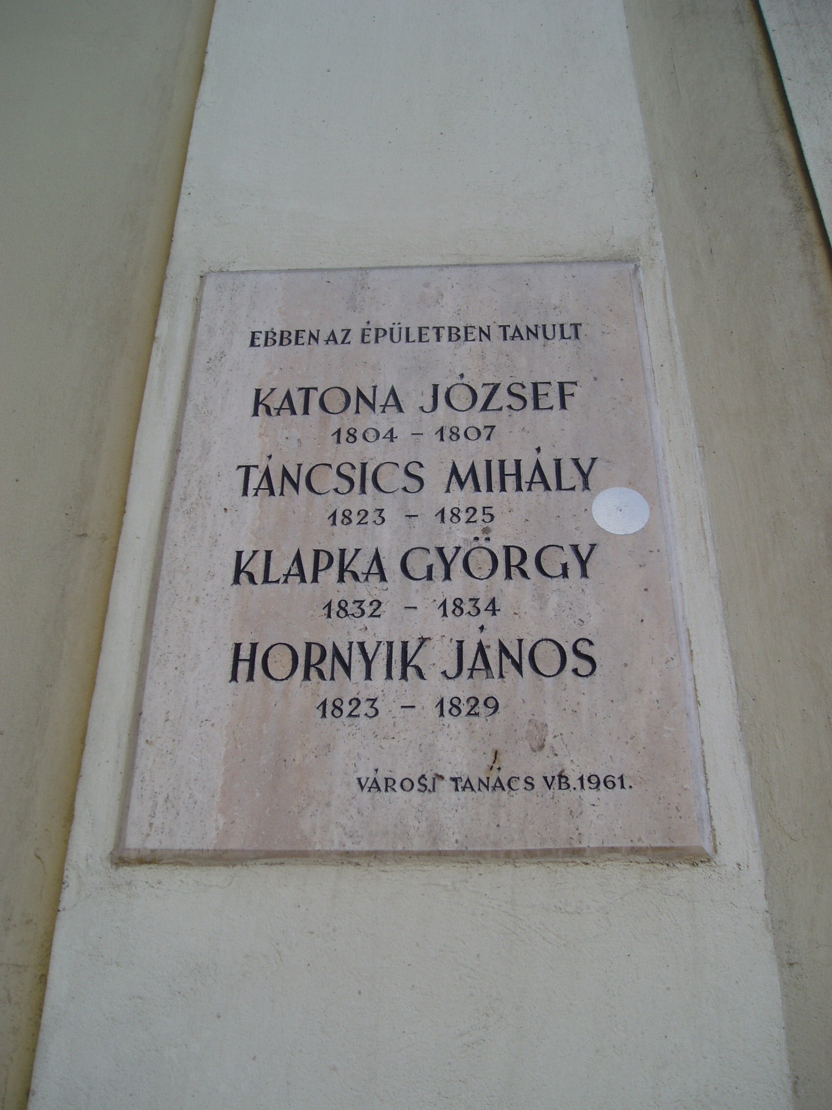 Nyilvános 1527 | 2559 | Kecskemét, Jókai utca 1. Piarista rendház és kollégium | A műemléki védelemmel óvott piarista rendház a mellette álló templommal együtt a város legszebb barokk épületegyüttese. A piarista atyákat a város egyik földesura, gróf Koháry István telepítette le Kecskeméten a XVIII. század elején, s 1712-ben alapítványt is tett templomuk, rendházuk és iskolájuk felépítésére. Az épületegyüttes fokozatosan, több ütemben készült el. A templomot nagy valószínűséggel Mayerhoffer András tervezte. Az oktatást a templom bal oldalán álló, 1720 és 1725 között, Paithmüller József tervei alapján emelt rendház helyiségeiben kezdték el. A jobb oldali iskolai szárnyat 1825–1832 között emelték, majd folyamatosan bővítették az épületet. Tanítás 1933-ig folyt benne. Ide járt iskolába 1804 és 1807 között Katona József, 1813-1815 között Táncsics Mihály, 1833-34-ben Klapka György, később Sík Sándor. Itt tanult az 1780-as években Szerelemhegyi Liebenberger András, a magyar zenés játék megteremtője, karnagy, valamint testvére, Lunkányi (Liebenber) János, Széchenyi István nevelője, műveinek első bírálója. A fénykép 2006 augusztusában készült. Felh. irod.: Heltai Nándor: Kecskemét. Kecskeméti Lapok, 1998 |