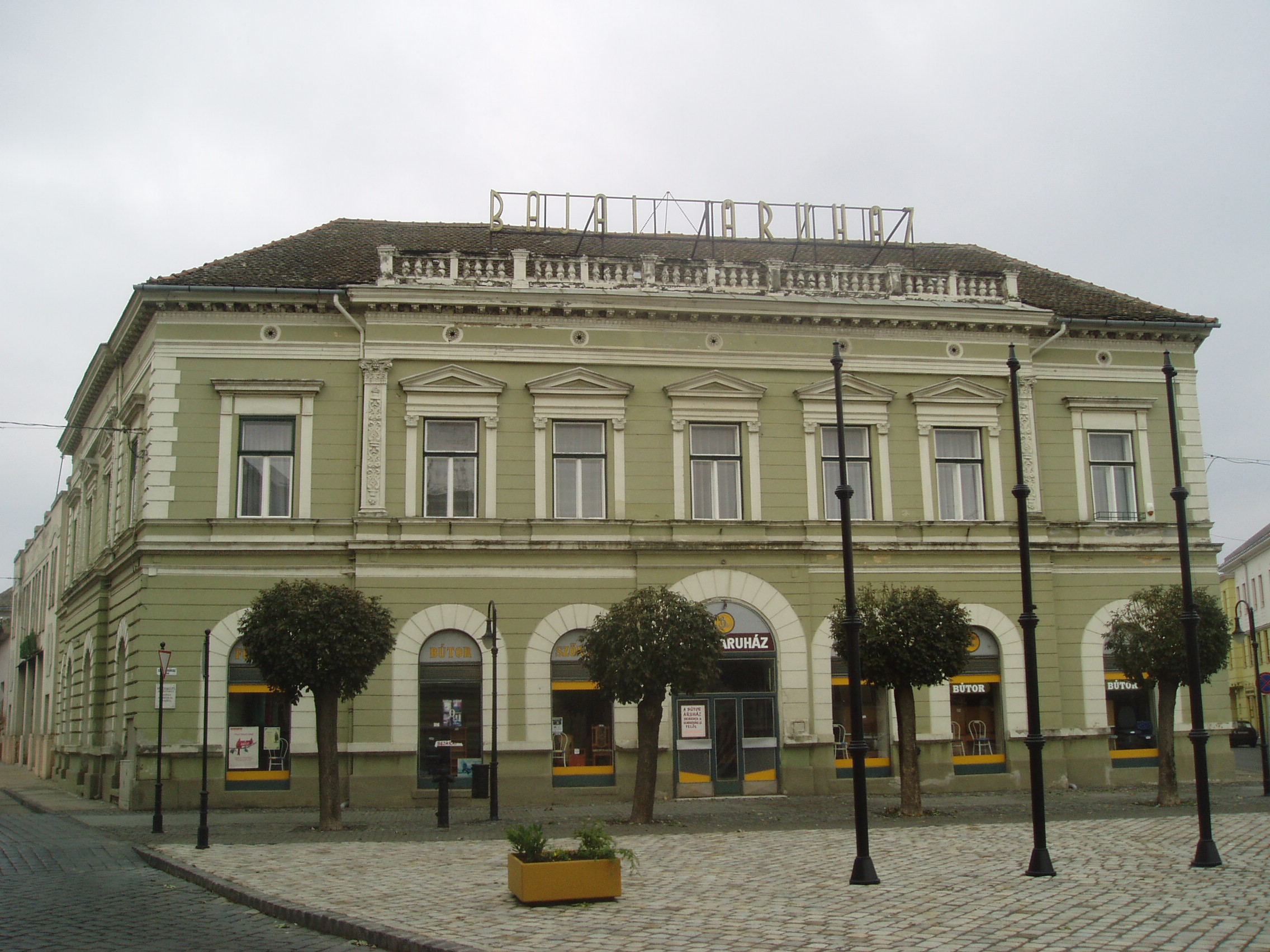 Nyilvános 1431 | 2097 | Baja, Szentháromság tér 3. | A bajai Szentháromság teret magyarországi Szent Márk térként emlegetik. Értékét nemcsak épületei, hanem kövezete is adja. A teret, amely három oldalról beépített, s nyitott negyedik oldala a Sugovicára néz, lóhere formában keresztezik az utak. A teret városképi jelentőségű épületek veszik körül, ezek egyike a 3. számú, 1880 körül eklektikus stílusban épült városi palota. Itt működött egykor a Reich Farkas és Fiai cég áruháza. A fénykép 2007 októberében készült. Felh. irod.: Látnivalók Bács-Kiskun megyében. Miskolc, Well-PRess, 2002 Magyarország műemlékjegyzéke: Bács-Kiskun megye. Bp. Kulturális Örökségvédelmi Hivatal, 2006 |