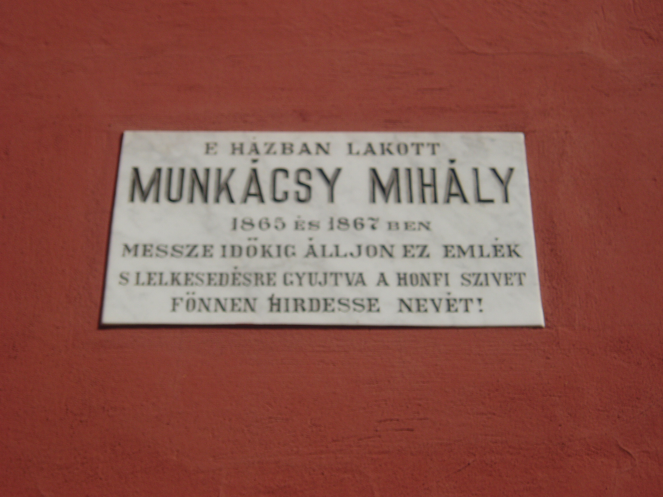 Nyilvános 1472 | 1970 | Pécs, Munkácsy utca 31. | A romantikus stílusú, földszintes lakóházon Munkácsy Mihály emléktáblája olvasható. 1865-ben és 1867-ben itt szállt meg rokonainál pécsi tartózkodásai idején. A fénykép 2006 júliusában készült. Felh. irod.: Csorba Csaba: Pécs. Bp. Panoráma, 1983 |