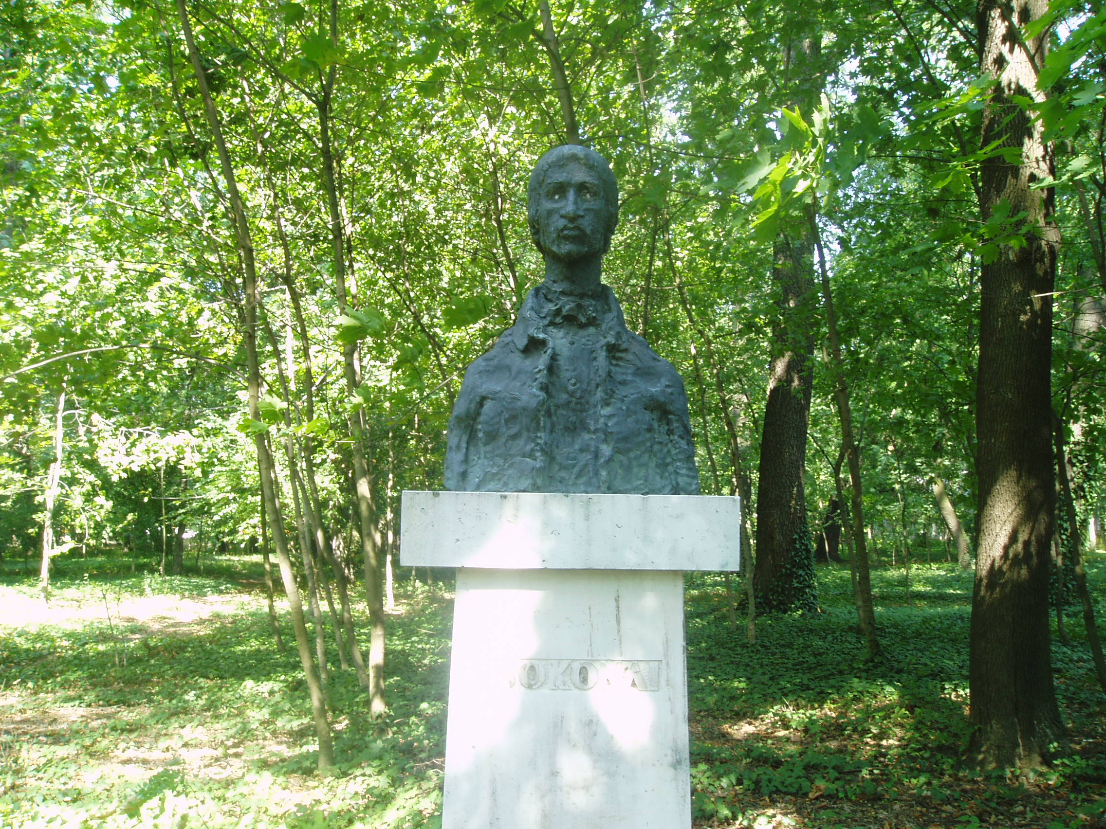 Nyilvános 1807 | 3941 | Sárospatak, Iskolakert: Csokonai Vitéz Mihály szobra | A Református Kollégium (lásd: Sárospatak, Rákóczi u. 1.) bejáratával szemben találjuk az Iskolakertnek nevezett parkot. Az 1980-as években természetvédelmi területté nyilvánított Iskolakert sajátos nemzeti érték, mely egyedülálló az országban. Sétányai mentén Patakhoz kötődő jeles személyiségek szobrai állnak. A képen Csokonai Vitéz Mihály bronz mellszobra látható. Vilt Tibor alkotását 1972-ben avatták fel. Csokonai 1795. decemberétől 1796. júliusáig tanult jogot Kövy Sándor professzortól Patakon. A fénykép 2007 augusztusában készült. Felh. irod.: Látnivalók Borsod-Abaúj-Zemplén megyében. Miskolc, Well-PRess, 1995 Martinák János: Csokonai és Sárospatak. = Zempléni Múzsa 2005. 2. www.sarospatak.hu/nevezetessegek |