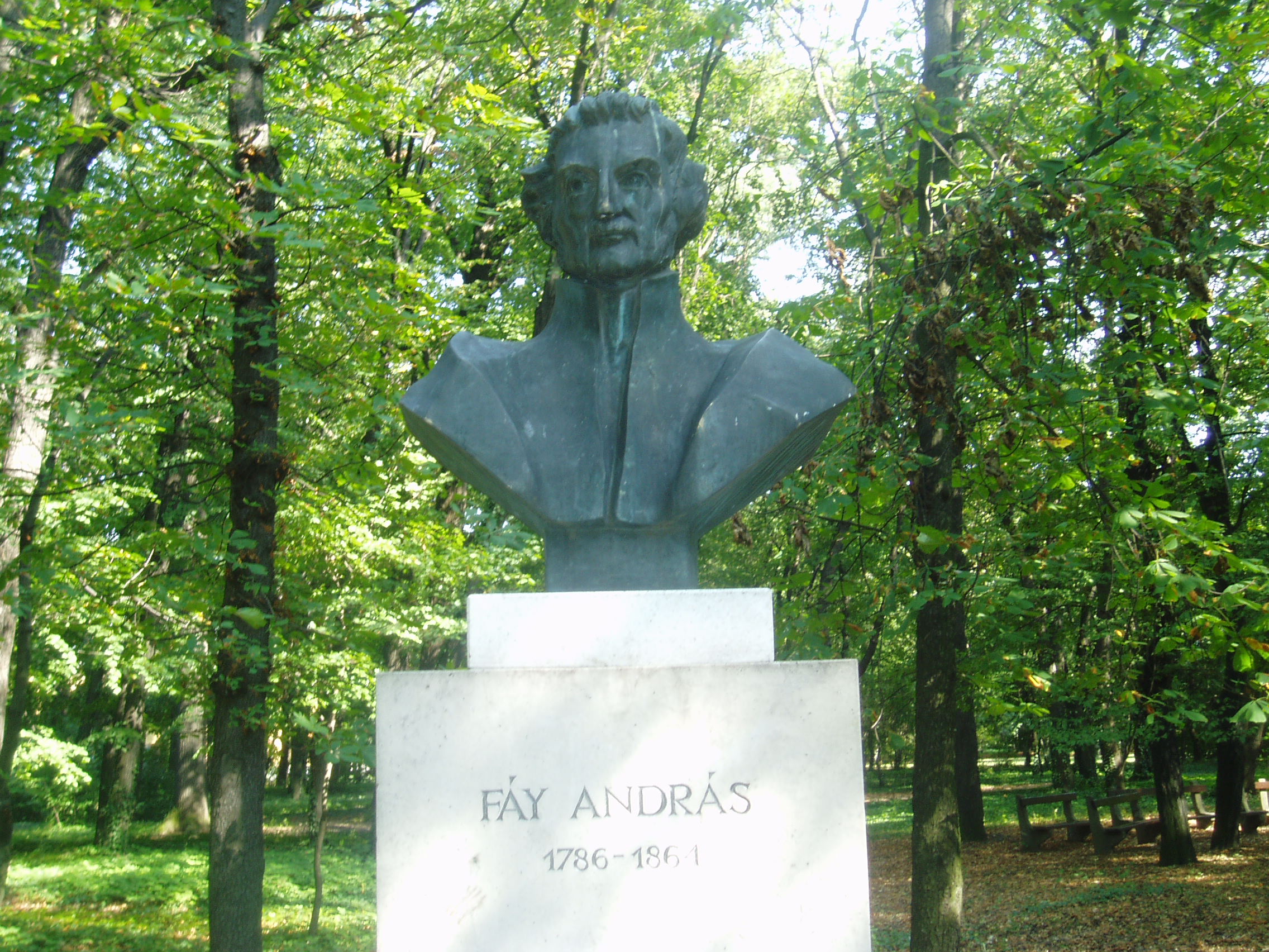 Nyilvános 1422 | 2141 | Sárospatak, Iskolakert: Fáy András szobra | A Református Kollégium (lásd: Sárospatak, Rákóczi u. 1.) bejáratával szemben találjuk az Iskolakertnek nevezett parkot. Az 1980-as években természetvédelmi területté nyilvánított Iskolakert sajátos nemzeti érték, mely egyedülálló az országban. Sétányai mentén Patakhoz kötődő jeles személyiségek szobrai állnak. Fáy András (1786-1864) bronzból készült mellszobra az Iskolakerti szoborsétányon található. Szathmáry Gyöngyi szobrászművész alkotását 1986-ban avatták fel. "A haza mindenese" 1893 és 1798 között tanult a kollégiumban (lásd: Sárospatak, Rákóczi u. 1.), majd a pozsonyi líceum után itt fejezte be középiskolai tanulmányait. A fénykép 2007 augusztusában készült. Felh. irod.: Látnivalók Borsod-Abaúj-Zemplén megyében. Miskolc, Well-PRess, 1995 www.sarospatak.hu/nevezetessegek Erős Zoltán: Magyar irodalmi helynevek A-tól Z-ig. Bp. Kis-Lant Kiadó, 1995 |