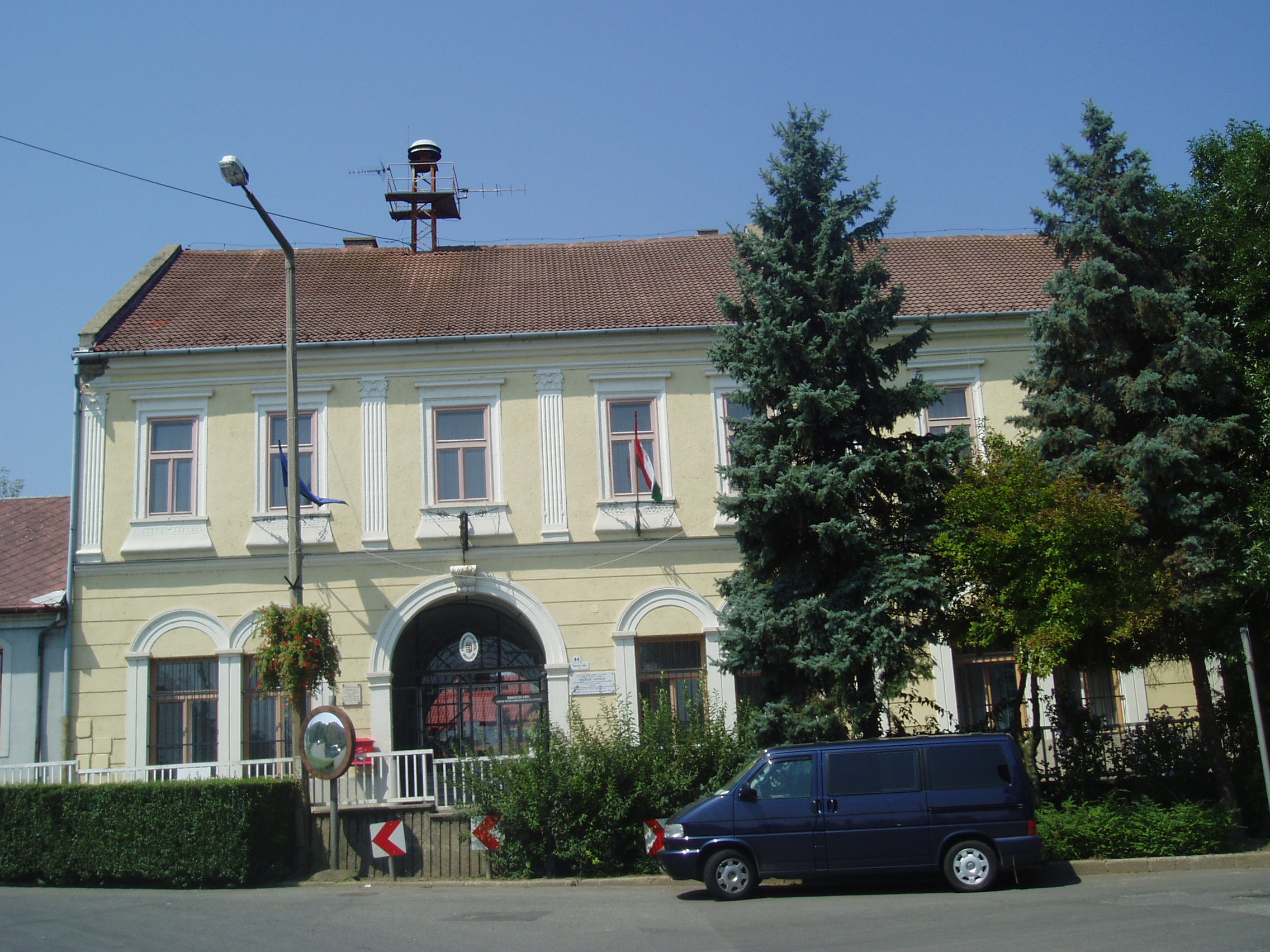 Nyilvános 1371 | 2198 | Sárospatak, Kossuth utca 44. Városháza | A városháza műemlék jellegű épülete XVIII. századi barokk épületrészek felhasználásával a XIX. században nyerte el mai alakját. Homlokzatán 2007-ben avatták fel Becker András emléktábláját. A fiatal, katonaviselt gazdálkodó a Tanácsköztársaság idején fel akarta venni a harcot a vörösök ellen. Tevékenységét leleplezték, s tűzharc során fogták el. A Sátoraljaújhelyről kiküldött forradalmi törvényszék halálra ítélte. Nagy tömeg jelenlétében akasztották fel a városháza kapujának vasrácsára. A fénykép 2007 augusztusában készült. Felh. irod.: Váry Albert: A vörös uralom áldozatai Magyarországon. Reprint kiadás, 1993 |