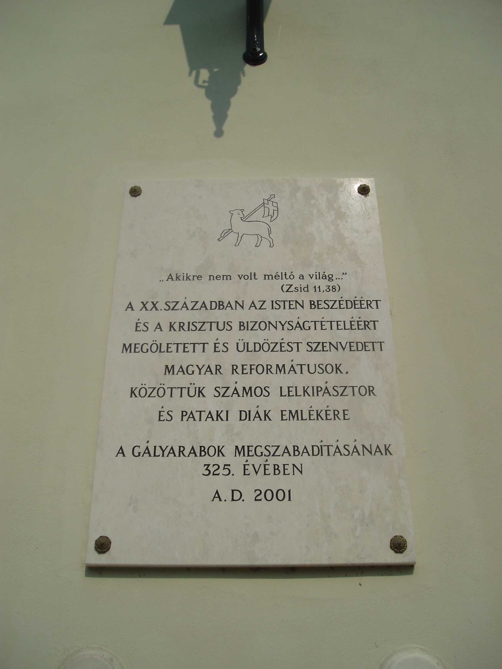 Nyilvános 1344 | 1808 | Sárospatak, Rákóczi utca 1. Református Kollégium | A kollégium főépülete, a Nagy Kollégium a Rákóczi út északi végén található, mely 1804–1814 között korai klasszicista stílusban épült. Szép ráccsal ellátott, háromíves nyílású kapuzat vezet be az un. „nagyportá”-ba, amelyet két sor vaskos pillér három hajóra oszt. Kétoldalt a falakon az iskolatörténet néhány fontosabb eseményének, illetve a kollégium nagy alakjainak bronz domborművű ábrázolásait helyezték el. A képen látható feliratos táblát az egykori gályarab pataki diákok megszabadításának 325. évfordulóján, 2001-ben állították. 1673-ban, a Wesselényi-összeesküvés (lásd: Sárospatak, Szent Erzsébet u. 19. Sub Rosa) leleplezése után I. Lipót császár református papokat és tanítókat ítélt gályarabságra. Közülük huszonketten pataki diákok voltak. Az ellenreformáció áldozatait 1676. február 11-én Ruyter holland admirális váltotta ki a rabságból és küldte haza (lásd még: Hajdú-Bihar megye/Debrecen, Emlékkert). A fénykép 2007 augusztusában készült. Felh. irod.: Détsy Mihály: Sárospatak. Bp. Corvina, 1974 Látnivalók Borsod-Abaúj-Zemplén megyében. Miskolc, Well-PRess, 1995 www.sarospatak.hu/nevezetessegek |