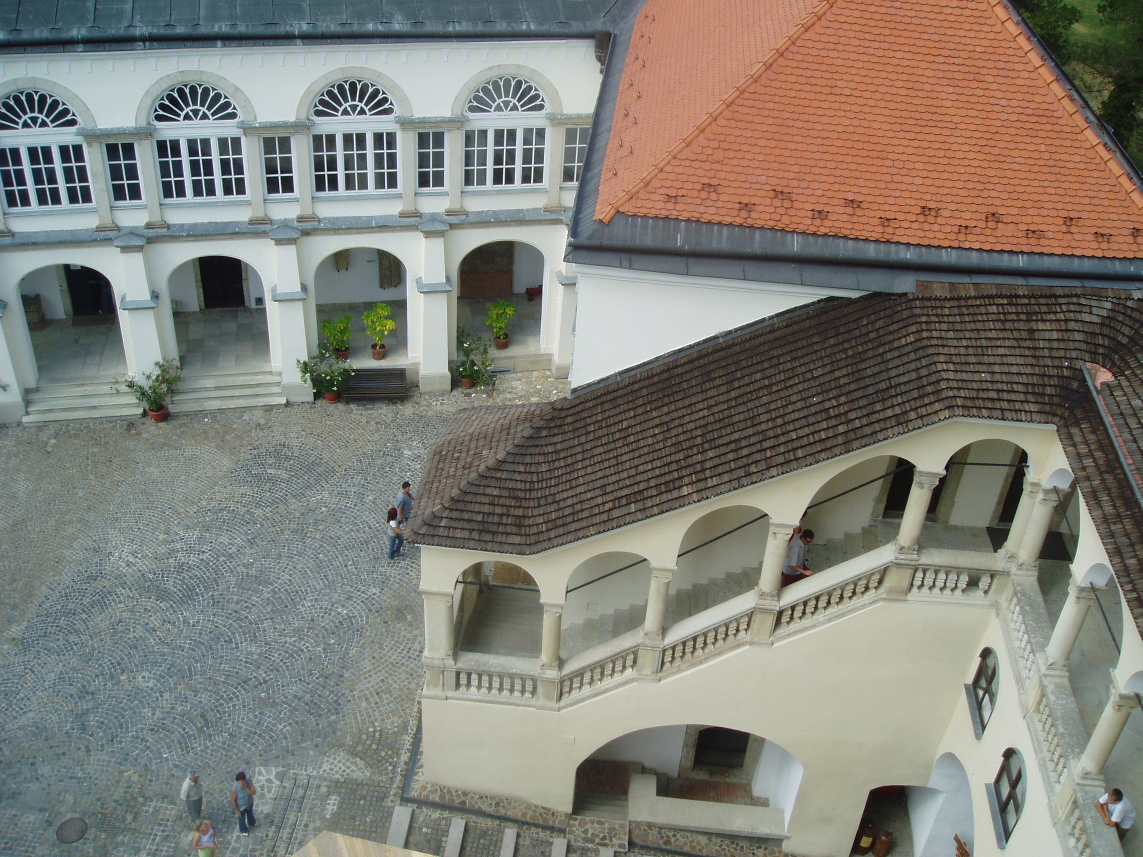 Nyilvános 1347 | 1778 | Sárospatak, Szent Erzsébet utca 19. Rákóczi-vár | A Vörös-torony legfelső szintjéről gyönyörű kilátás nyílik a külső várra, a városra, és az azt körülvevő változatos tájra. De szép lelátás kínálkozik a várkastély tarka tetőire, a várudvarra, az azt övező homlokzatokra és az árkádos loggiára is. A fénykép 2007 augusztusában készült. Felh. irod.: Détsy Mihály: Sárospatak. Bp. Corvina, 1974 Látnivalók Borsod-Abaúj-Zemplén megyében. Miskolc, Well-PRess, 1995 www.sarospatak.hu/nevezetessegek |