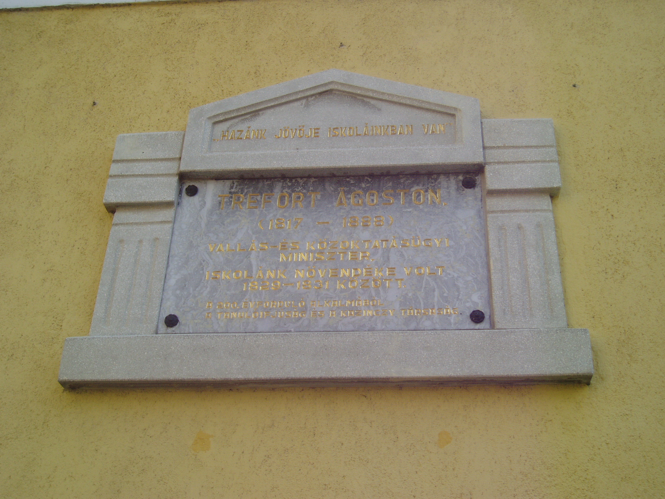 Nyilvános 957 | 1396 | Sátoraljaújhely, Deák Ferenc utca 12. Kossuth Lajos Gimnázium | A piarista rendház és templom mellett áll a jelenlegi Kossuth Lajos Gimnázium épülete. Az iskola jogelődjét, amely első három évtizedében a rendház épületében működött, II. József rendeletére 1789-ben alapított a a piarista rend. Az első években négy évfolyamos algimnáziumként működött, majd az 1806-ban kiadott II. Ratio Educationis hatosztályos főgimnáziummá minősítette. A mostani épületet első formájában 1820-ban adták át rendeltetésének. A század végén új szárnnyal bővítették, majd 1908 körül lebontották a legkorábbi épületrészt és annak helyére is modernebb szárnyat húztak fel. A piaristák iskolájában sok, később országos hírnevű személyiség tanult, például Kossuth Lajos, Andrássy Gyula, Trefort Ágoston, Kazinczy Lajos. Itt diákoskodott 1829 és 1831 között Trefort Ágoston, aki 1872-1888 között vallás- és közoktatásügyi miniszter, 1888-tól haláláig a Magyar Tudományos Akadémia elnöke volt. A fénykép 2007 augusztusában készült. Felh. irod.: Látnivalók Borsod-Abaúj-Zemplén megyében. Miskolc, Well-PRess, 2003 www.satoraljaujhely.hu/nevezetessegek www.vendegvaro.hu www.kossuth-saujhely.sulinet.hu |