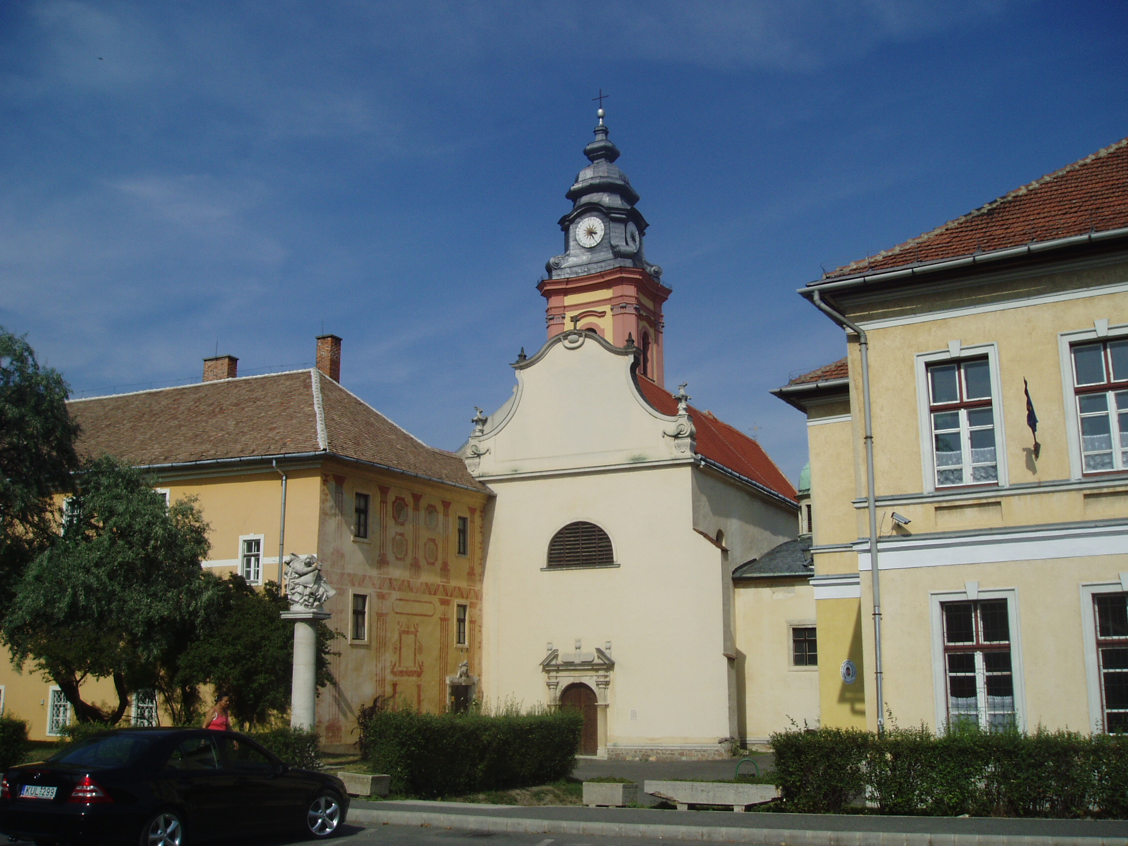 Nyilvános 942 | 1480 | Sátoraljaújhely, Deák Ferenc utca 10-12. Piarista templom, rendház és gimnázium | Sátoraljaújhely legértékesebb műemlék együttese a város legősibb részén, az ún. Barátszeren található. A településrész az egyetlen magyar alapítású szerzetesrendről, a pálosokról kapta nevét. A rend már a XIII. század második felében megkezdte itt kolostorának (a képen balról) építését. A templom eredete is a XIV. századra nyúlik vissza. Az épületegyüttest a pálos rend feloszlatása után, a XVIII. század végén a piaristák kapták meg. A templom mellett jobbról a Kossuth Lajos Gimnázium XIX. század végi épülete áll. A fénykép 2007 augusztusában készült. Felh. irod.: Látnivalók Borsod-Abaúj-Zemplén megyében. Miskolc, Well-PRess, 2003 www.satoraljaujhely.hu/nevezetessegek www.vendegvaro.hu |