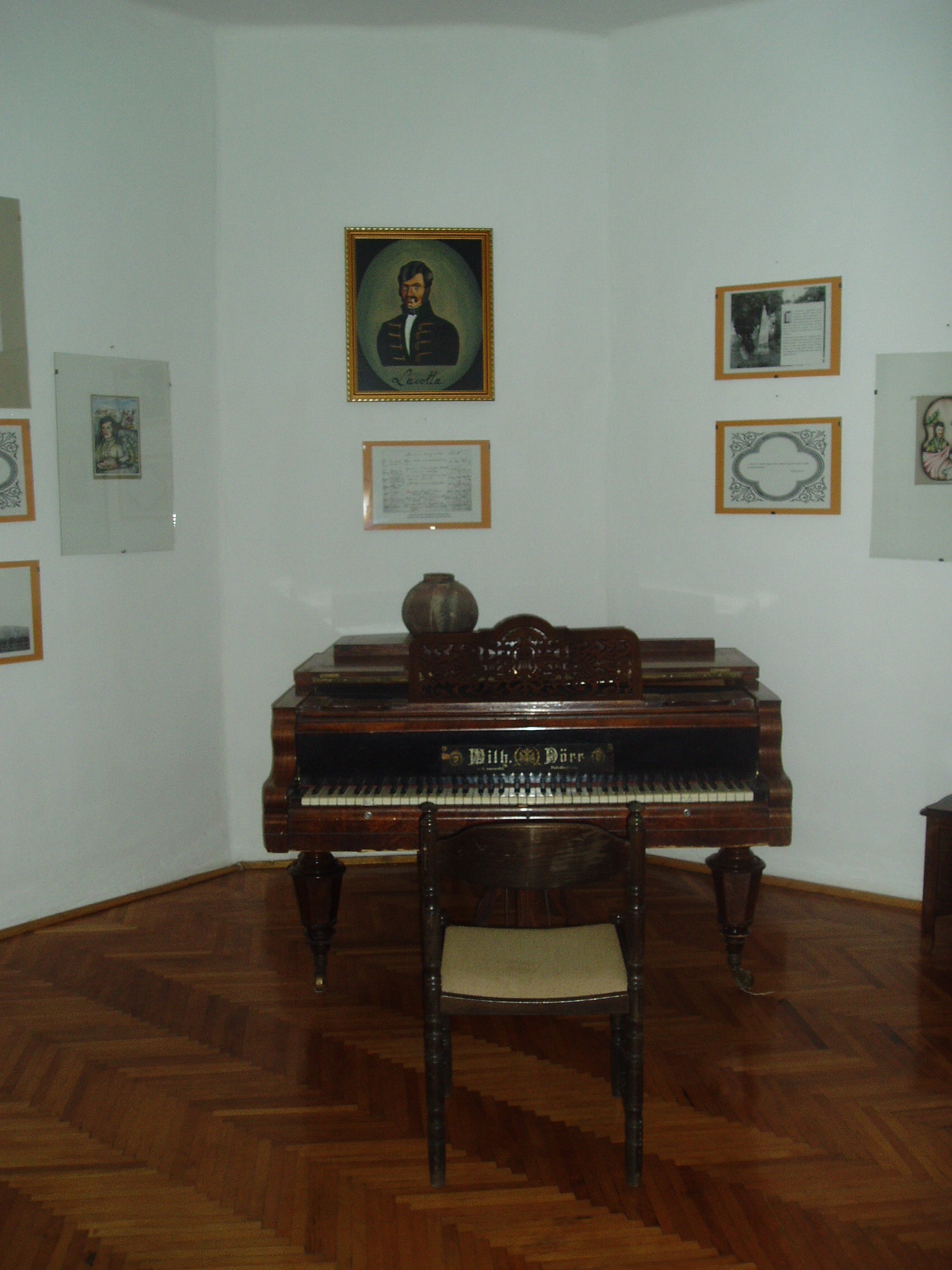 Nyilvános 1419 | 2013 | Tállya, Rákóczi utca 10. Maillot-kastély: Lavotta János emlékszoba | A kastély 1720 körül épült, barokk stílusban (a báró Maillot család akkor került Tállyára, amikor a Rákócziak birtokait az elveszett szabadságharc után elkobozták, s azok egy részét ők kapták meg). Az épületet az évszázadok alatt többször átalakították. Külső falfelületét vakolatrávitellel sávok és keretezett ablakok tagolják. Belső szobái sík és boltozatos födémmel záródnak, s bennük – míg a gazdái birtokolták – értékes régiségek halmozódtak fel. Bútorzata, szobaberendezési tárgyai a XVII–XVIII. századból származtak. A második világháború végén azonban az enyészet vagy a rablás tárgyai lettek. Egyik földszinti termében 2001-ben nyitották meg az 1820-ban Tállyán elhunyt (lásd: Tállya, Rákóczi u. 24) és eltemetett (lásd: Tállya, Temető) Lavotta János (1764-1820) emlékszobáját, amelyben művészeti alkotások, kották, képek segítségével mutatják be a nagy verbunkos triász jeles tagjának életútját, munkásságát. A Maillot–kastélyban állítják ki a Tállyán 1996 óta működő Középeurópai Művésztelep alkotóinak műveit is. A fénykép 2007 augusztusában készült. Felh. irod.: Takács Péter: Tállya. Bp. Száz Magyar Falu Könyvesháza Kht., 2001. /Száz magyar falu könyvesháza/ Látnivalók Borsod-Abaúj-Zemplén megyében. Miskolc, Well-PRess, 2003 www.tallya.hu |