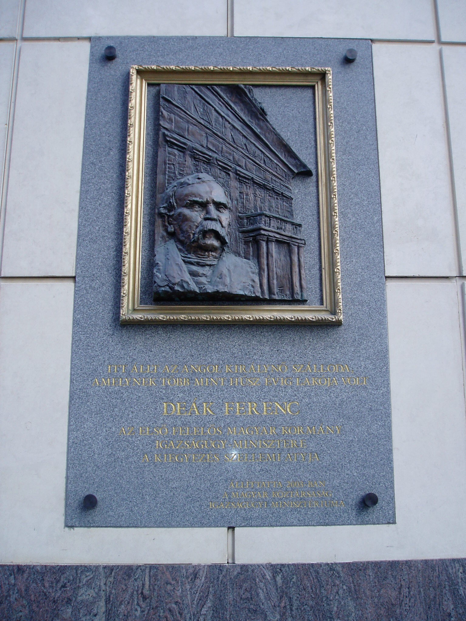 Nyilvános 1455 | 2010 | Budapest V. Deák Ferenc utca 1. | A mai Deák Ferenc utca 1. - Türr István utca 8. - Apáczai Csere János utca 9. számú épületek által határolt területen állt Kemnitzer János szerencsejátékból meggazdagodott tímármester 1792-ben épült kétemeletes monumentális lakóháza. Ennek földszintjén működött a Kemnitzer-, vagy másik nevén Márványos-kávéház, amelynek - a korabeli leírások szerint - nem akadt párja Európában. Az 1838-as nagy pesti árvíz azonban teljesen elöntötte és tönkretette az épületet, de erős alapfalainak felhasználásával újjáépítették, és új tulajdonosa szállodává alakíttatta. 1839-ben már meg is nyílt, s az akkoriban megkoronázott Viktóriáról nevezték el Angol Királynő szállodának. Az új szálloda is európai hírességgé vált vörösmárvány lépcsőivel, fehér, aranyozott oszlopaival és mahagónifával borított falaival. 1849-ben azonban ismét nagy csapás érte: Pest bombázásakor a környékbeli épületekkel együtt súlyosan megrongálódott. 1850-ben Hild József építette újjá, s ismét régi fényében működött. "Fejedelmek lakóhelyének" nevezték, mert lakott benne királynő, császár, sah, cár, trónörökös. A magyar történelembe azonban azzal írta be a nevét, hogy tizenöt éven át, majdnem haláláig itt élt Deák Ferenc, s itt tárgyalt a kiegyezés előkészítése idején a bécsi udvar megbízottaival. Az Angol Királynő az 1900-as évek elejétől kezdte elveszíteni népszerűségét, amikor elvette Dunára nyíló panorámáját és felülmúlta kényelmét az eléje épített luxushotelek sora. 1916-ban megszűnt, épületét, amelyben ezután a Pénzintézeti Központ működött, az 1940-es években lebontották. A fénykép 2005 májusában készült. Felh. irod.: Konrádyné Gálos Magda: Pest-budai szállók emlékeiből 2. = Budapest 1974. 9. Gundel Imre -Harmath Judit: A vendéglátás emlékei. Bp. Közgazdasági és Jogi Kiadó, 1979 |