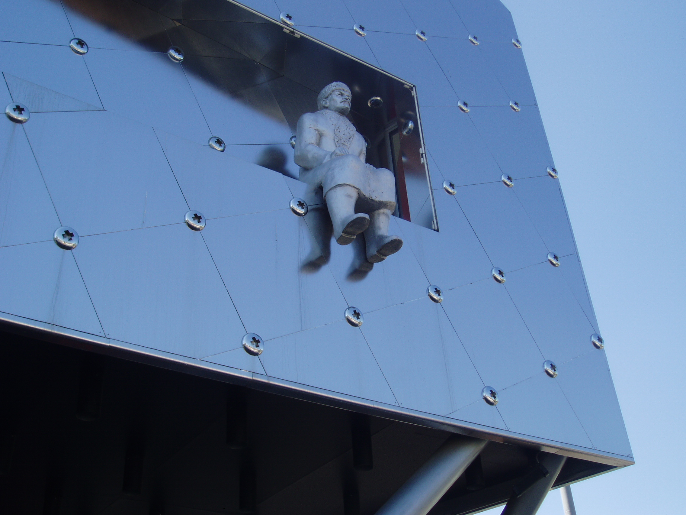 Nyilvános 1800 | 3494 | Hódmezővásárhely, Andrássy utca 34. EmlékPont | Az EmlékPont - Fél évszázad Vásárhelyen Humán Oktatási Központ 2006-ban nyílt meg a fő utca egyik polgárházának átépítésével. Az intézmény Magyarországon elsőként egy konkrét város történetén keresztül mutatja be az 1945-1990 közti szocialista korszak történetét. Maga az épület vizuálisan is rendkívül érdekes. A homlokzatot egy egykori Lenin-szobor uralja, lábát lógatva groteszk hatást keltve. A korhű hangulat felidézéséhez több, a rendszerváltáskor "leváltott" szobrot is felhasználtak, de szinte abszurd elhelyezésben. A különleges tárlaton a legkorszerűbb kiállítási-, és múzeumpedagógiai eszközök segítségével elevenednek meg azok a történelmi folyamatok, amelyek Hódmezővásárhely és környéke lakóinak életét meghatározták ebben az időszakban. Az épületben kávéház, könyvesbolt és konferenciaterem is található. A fénykép 2007 júliusában készült. Felh. irod.: www.emlekpont.hu www.vendegvaro.hu |