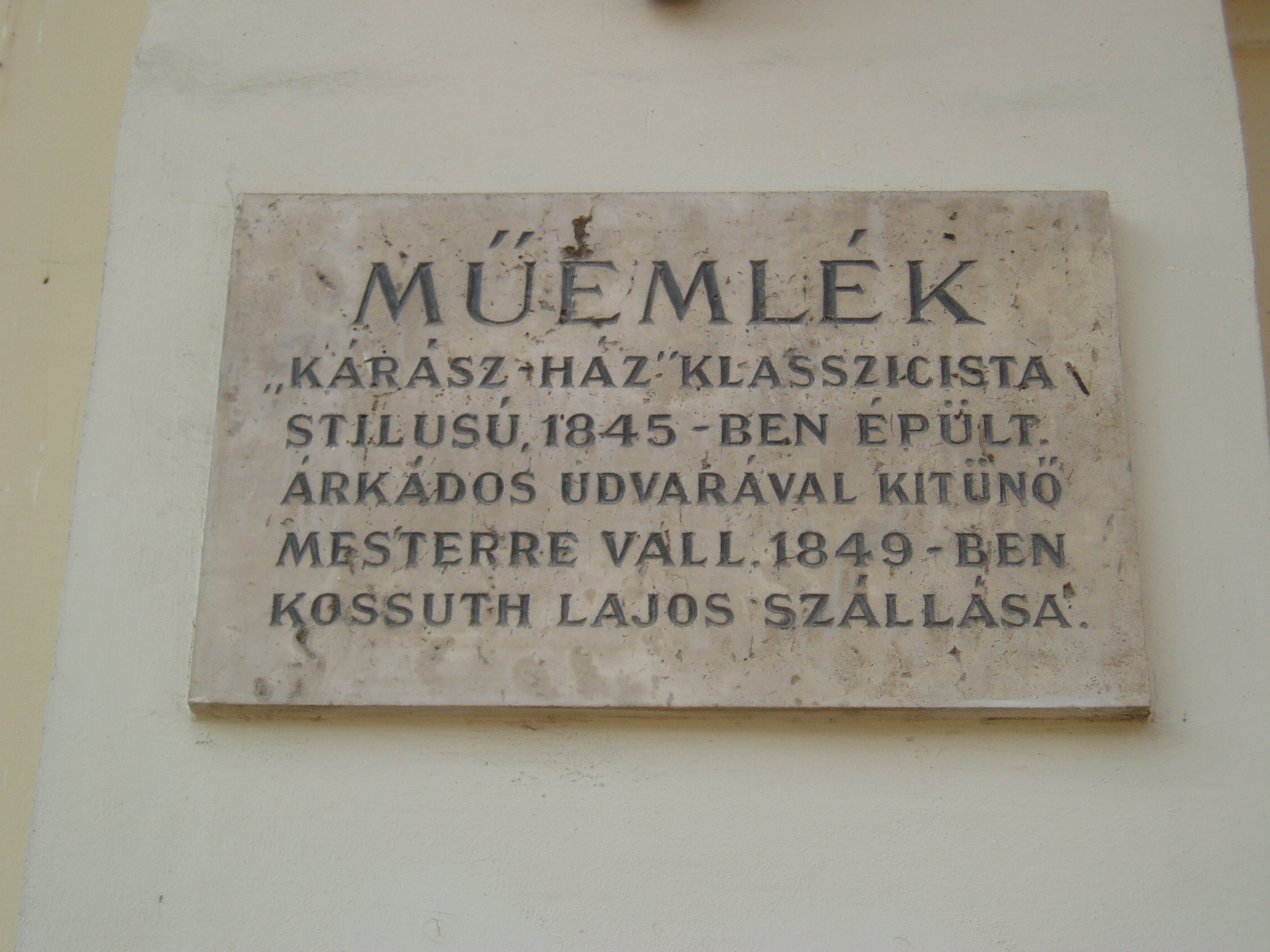 Nyilvános 950 | 1335 | Szeged, Klauzál tér 5. Kárász-ház | A tér legszebb és legjelentősebb műemlék épülete a Kárász-ház (1845). A szegedi klasszicizmus legérettebb, egyszerű, de monumentális alkotása. Kiemelkedő szerepe van a tér kiegyensúlyozott hatásában. 1849-ben ebben a házban szállt meg Kossuth Lajos és ennek kovácsoltvas erkélyéről mondotta el július 12-én utolsó nyilvános hazai beszédét, majd 14-én itt írta alá a román - magyar megbékélési tervezetet is Nicolae Bălcescuval. A történelmi nevezetességű erkély 1918-ban is szerephez jutott. Innen jelentette be október 31-én a szegedi Nemzeti Tanács a város népének az őszirózsás forradalom győzelmét. Szólt ekkor a szegediekhez Móra Ferenc és Juhász Gyula is. Majd az események fordultával 1919. június 2-án Károlyi Gyula kormánya is itt hirdette ki megalakulását. A Kárász családból többen is beírták nevüket a város történetébe. Az alapító, Kárász Miklós (1715-1797) szegény felvidéki nemes ifjú volt, városi íródeáknak került Szegedre. 1739-ben lett Szeged főjegyzője, s egyúttal - szabályellenesen - tanácsnoka is, majd 11760-ban Csongrád megye alispánja. Vagyonát házasságával alapozta meg. A mostani ház helyén az 1760-as években építette fel kúriáját. Eléje Szentháromság-szobrot emelt, állítólag fogadalomból, mert egy kocája elvesztése miatt ártatlan kondását agyonütötte. Móricz Pál "A Kárász uraság kocája" című elbeszélésében dolgozta fel a helyi szájhagyományt. Fia, Kárász István (1745-1815) Csongrád megye alispánja, az 1790-91. évi országgyűlésen a nemesi ellenzék egyik elszánt vezére volt. Az ő fia, szintén Kárász István 1840-ben mint Csongrád megye követe az országgyűlésben Deák Ferenccel emelte fel szavát az ősiség ellen. Kárász Miklós egy másik unokája, Kárász Benő (1792-1874) építette a most itt álló Kárász-házat. Ő a megyének a reformkorban alispánja, 1848-ban főispánja, tagja a szegedi hadi választmánynak, amiért Világos után a pesti Újépület foglya volt. Kegyelem révén szabadult ugyan, de az önkényuralom alatt állandó rendőri felügyelet alatt állott. Az alkotmány visszaállításáért folytatott küzdelemben, Szeged gazdasági fejlődésében jelentős szerepet játszott, majd 1861-től 1868-ig ismét főispán lett. Lánya, Anna fiatalon meghalt, egyetlen fia, Kárász Géza (1837-1905) kezén pedig a vagyon elúszott. Amikor 1857-es szegedi látogatásakor ebben a házban szállt meg Ferenc József, az anekdota szerint a húszéves, tüzes kuruc Kárász Géza éppen akkor érkezett haza külföldről, s a kapu alatt a császári őrséget meglátva iszonyú lármát csapott, mire apja a hajdúkkal bezáratta a kocsiszínbe... A fénykép 2007 júliusában készült. Felh. irod.: Péter László: Szeged. Bp. Panoráma, 1981 |