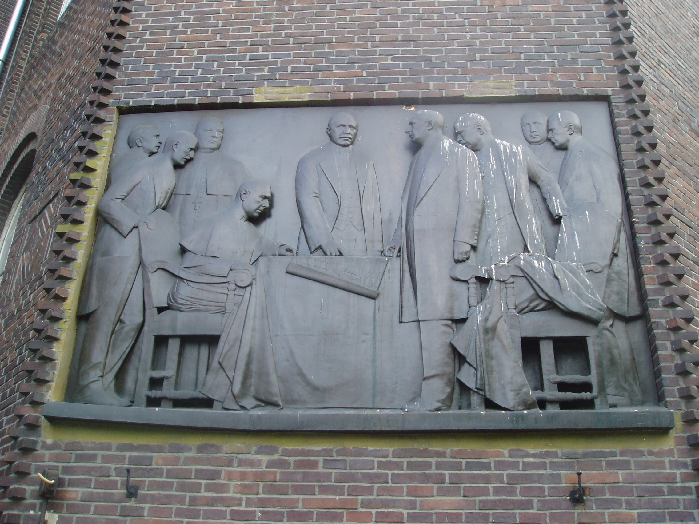 Nyilvános 1386 | 1950 | Szeged, Rerrich tér | A Fogadalmi templommal szinte összeforrott a két világháború közötti időszak legszebb magyar építészeti alkotása, a Rerrich Béla által tervezett árkádos épületcsoport, amely U alakban fogja össze a Bálint Sándor által legartisztikusabb hazai modern térkompozíciónak minősített Dóm teret. A Dóm építésével egyidejűleg merült fel az igény, hogy hangolják össze az egyetemi, illetve püspökségi épületeket. A tér megkomponálására Klebelsberg Kunó kultuszminiszter 1927-ben írt ki pályázatot, amelyet Rerrich Béla nyert meg. Az épületegyüttes kialakítását 1928-ban kezdték meg. Az égetett, klinkertéglából készült téregyüttest az északeurópai országok építészete ihlette, Rerrich mintája valószínűleg a stockholmi városháza volt. Az épületegyüttes nyugati részein egyetemi kollégium és hittudományi főiskola, délnyugati részein püspöki székház, déli és keleti szárnyán pedig természettudományi és orvosi egyetemi intézetek foglalnak helyet. A tér kialakításának emlékére emléktáblát állítottak. A rajta látható személyek balról jobbra: Korb Flóris építész, Gaál Endre kultúrtanácsnok, Várhelyi József, a Dóm első plébánosa, Glattfelder Gyula megyéspüspök, Somogyi Szilveszter polgármester, Klebelsberg Kunó kultuszminiszter, Aigner Károly főispán, Tóth Károly rektor, Rerrich Béla építész. A fénykép 2007 júliusában készült. Felh. irod.: Péter László: Szeged. Bp. Panoráma, 1981 Bálint Sándor: Szeged városa. Bp. Képzőműv. Alap, 1959 |