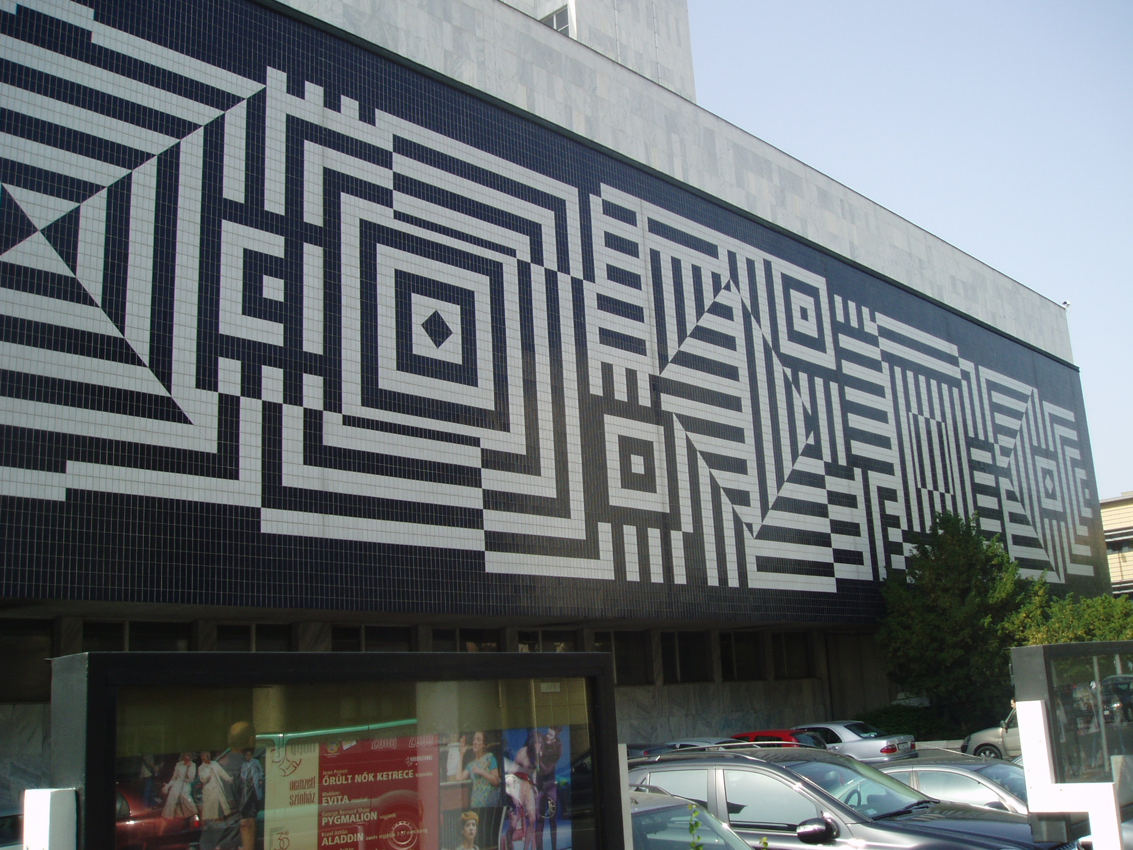 Nyilvános 1414 | 1798 | Győr, Czuczor Gergely utca 7. | Az 1978-ban átadott színházépület az első méltó otthona az 1768 óta többnyire egészen mostoha körülmények között helytálló győri színművészetnek. Terveit a Győri Tervező Vállalat készítette, Vincze Kálmán vezetésével. Látványos külső falburkolatát a magyar származású Victor Vasarely tervei alapján valósították meg. Az épület felavatása után hamarosan, 1979-ben megalakult Markó Iván vezetésével a Győri Balett, amely rövid idő alatt a világ élvonalába került. Vezetője 1991 óta az alapító tagok közé tartozó Kiss János. A felvétel 2008 május végén készült. Felh. irod.: Cziglényi László: Győr. Bp. Panoráma, 1981 www.gyoribalett.hu |