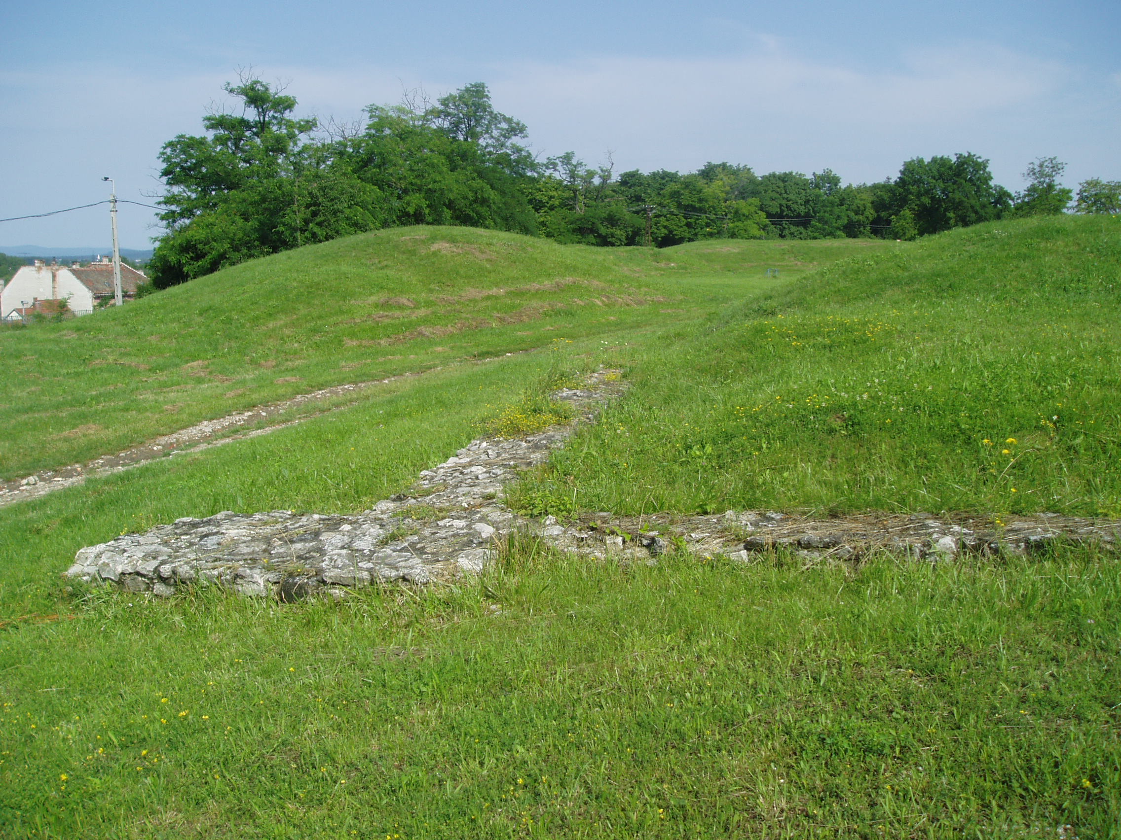 Nyilvános 1490 | 4379 | Sopron, Bécsi domb: Nemesis-szentély | Az amfiteátrum (lásd az előző képen) város felőli bejáratánál emelkedett a Nemesis-szentély. A mai Sopron helyén fekvő ókori települést az i. e. I. század elején alapították, központja a mai városközpont helyén volt. A fénykép 2008 júniusában készült. Felh. irod.: Czellár Katalin: Sopron. 3. jav. kiad. Bp. Panoráma, 2000 |