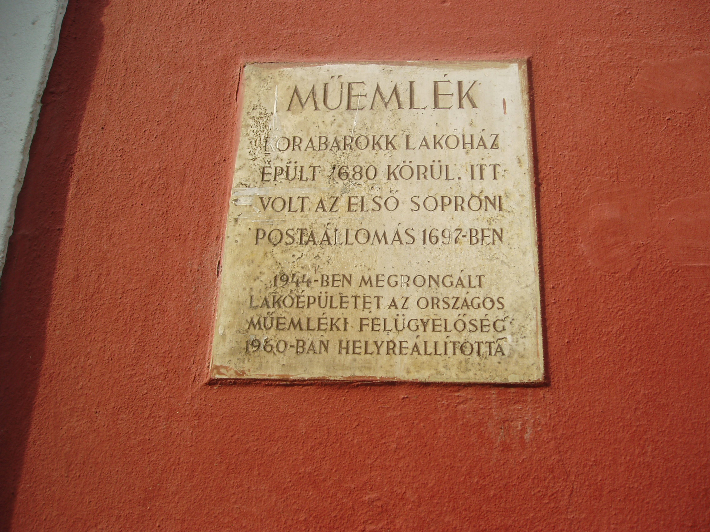 Nyilvános 955 | 1446 | Sopron, Fegyvertár utca 23. | A belvárosban, a Templom utca 21. szám után balra nyílik a rövid Fegyvertár utca. A 23. számú, 1680 körül korabarokk stílusban épült ház várostörténeti jelentősége, hogy 1697-ben itt volt az első postaállomás. A fénykép 2008 júniusában készült. Felh. irod.: Czellár Katalin: Sopron. 3. jav. kiad. Bp. Panoráma, 2000 |