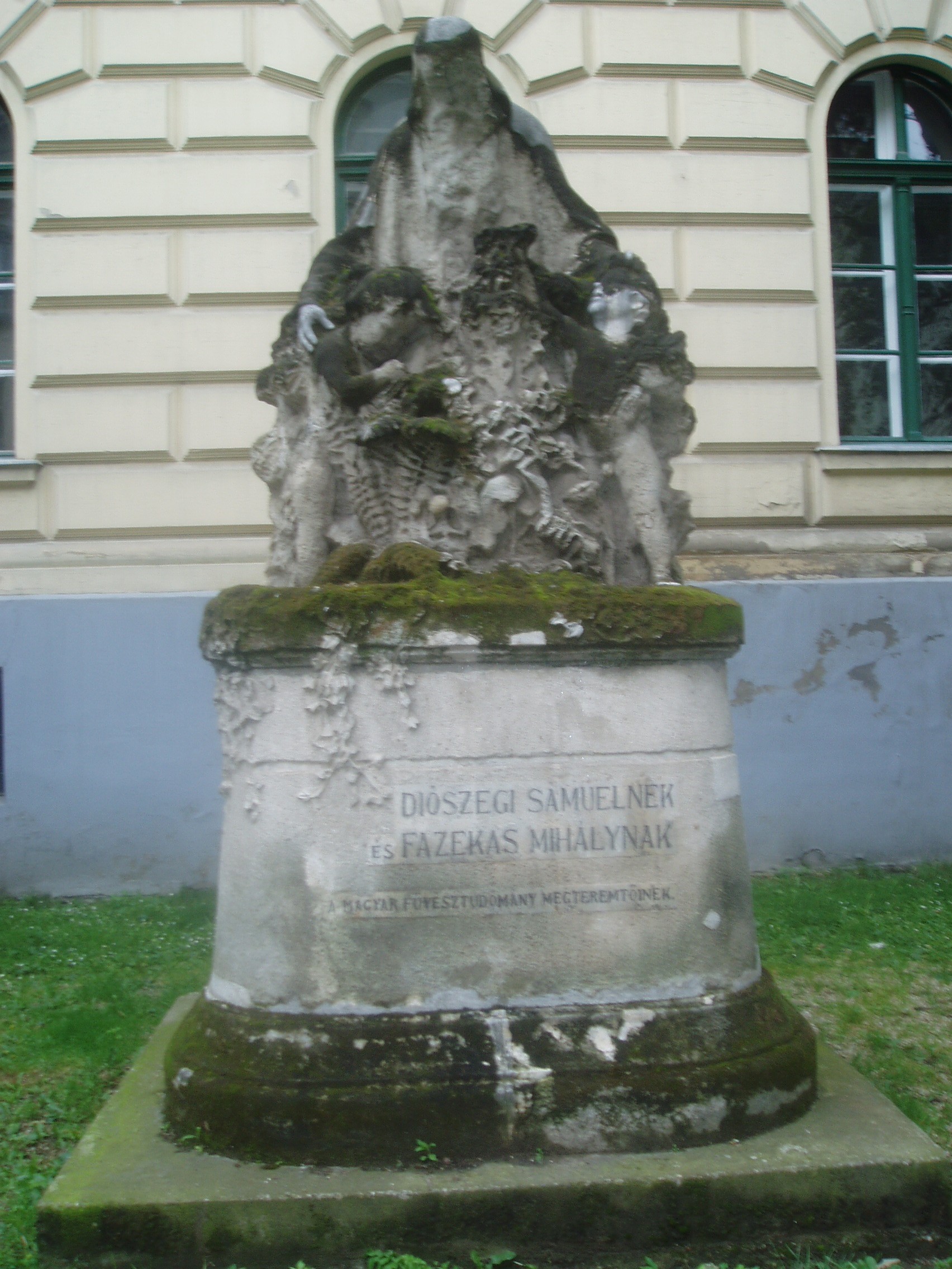 Nyilvános 1485 | 2751 | Debrecen, Perényi utca: Füvészkert szobor | A Perényi utcán álló Füvészkert-szobor voltaképpen Diószegi Sámuel és Fazekas Mihály (lásd még: Debrecen, Piac u. 68.) emlékműve. A szoborkompozíció, mely Somogyi Sándor debreceni szobrász alkotása, nem személyükben ábrázolja a két kiváló botanikust. A romantikus szimbolika szerint alkotott emlékmű fő alakja az áldást osztó Természet egy idős ember képében. Két gyermeket ölel magához, akik a világ titkain ámuló és az azt kutató emberiség kettős arcát jelképezi. Az emlékművet 1907-ben avatták fel, az első, Linné rendszere alapján írt magyar nyelvű Füvészkönyv megjelenésének 200. évfordulója alkalmából. Fazekas Mihály és Diószegi Sámuel tevékenységének köszönhetően készült el Debrecenben az első füvészkert, amelyet 1807-ben létesítettek a mai Déri Múzeum helyén. Emlékét ma már csak a Füvészkert utca őrzi. Az új füvészkertet a Nagyerdő területén hozták létre, ott is áll egy Diószegi-Fazekas emlékmű, amely már a két tudós valóságos alakját ábrázolja. Felh. irod.: Kovács Gergelyné: Debrecen. Bp. Panoráma, 1981 www.debrecen.hu |