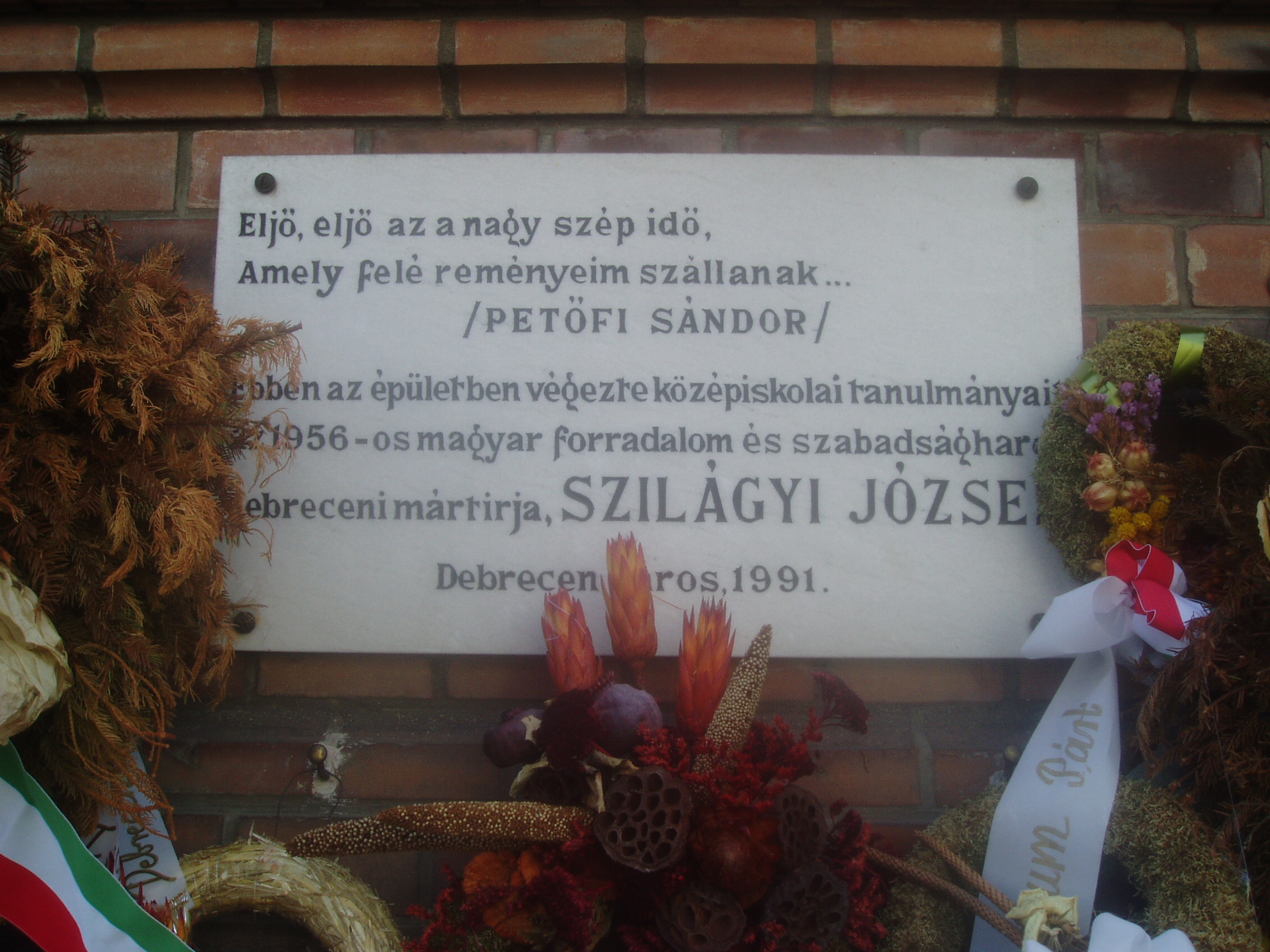 Nyilvános 979 | 1571 | Debrecen, Péterfia utca 1-7. | A Kölcsey Ferenc Református Tanítóképző Főiskola mostani otthona 1911-13 között épült Petz Samu tervei alapján. Korábban itt a főgimnázium működött. Ide járt iskolába és itt is érettségizett a debreceni születésű Szilágyi József (1917-1958) politikus, aki 1944 végén rövid ideig Debrecen rendőrkapitánya is volt. 1956-ban megszervezte és vezette Nagy Imre miniszterelnöki titkárságát. November 4-én családjával együtt a jugoszláv követségre menekült, majd őt is Romániába internálták. Snagovban tartóztatták le. A Nagy Imre per vádlottjaként 1958. április 24-én kivégezték. A fénykép 2006 júniusában készült. Felh. irod.: www.kfrtkf.hu/index3.html Magyar életrajzi lexikon |
