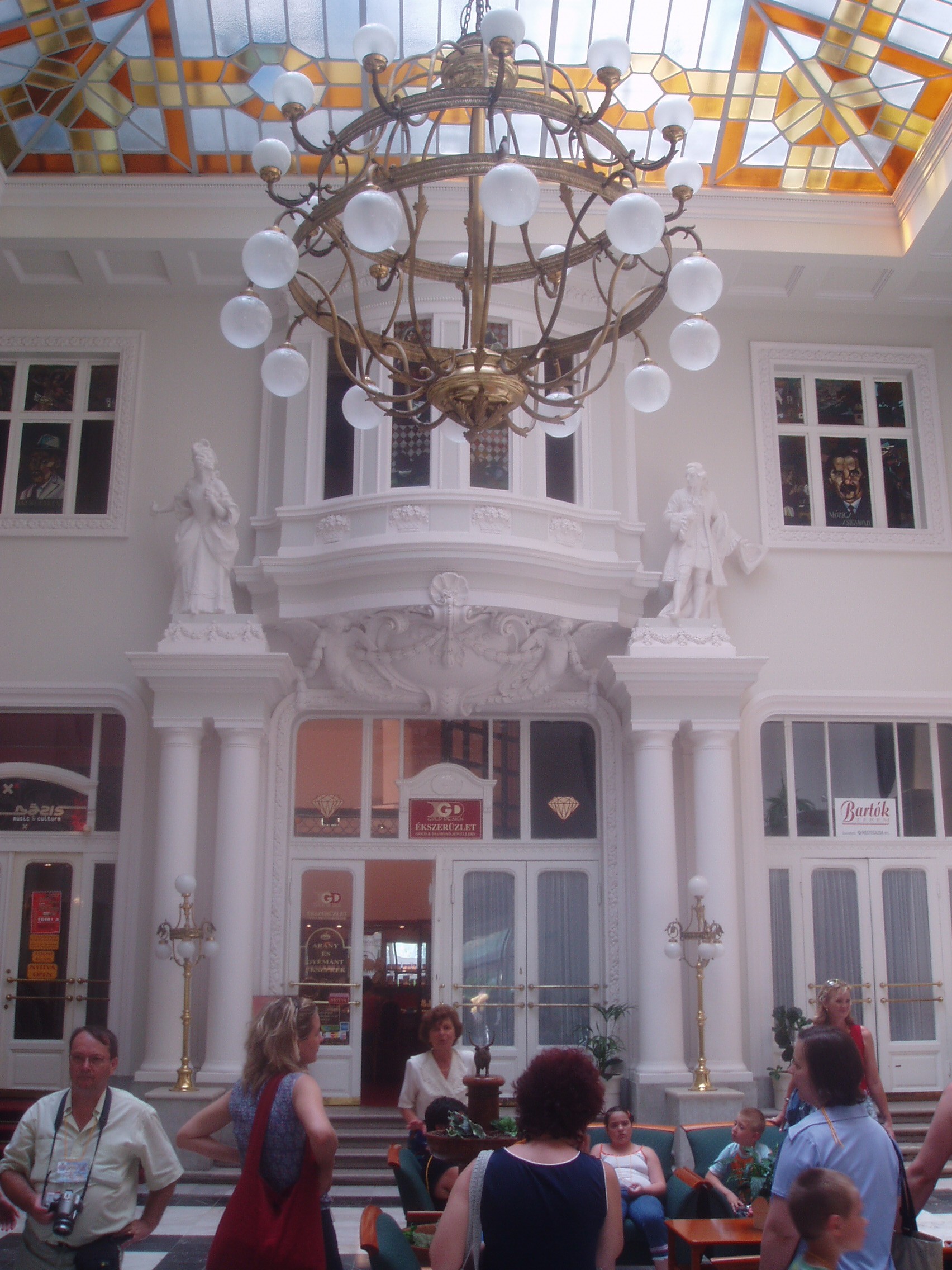 Nyilvános 1434 | 2039 | Debrecen, Piac utca 11-15. Arany Bika Szálloda | A szecessziós épületegyüttes 1913–1915 között épült Hajós Alfréd és Villányi Lajos tervei szerint. Új szárnyát 1976-ban építették hozzá. A négyemeletes főépület homlokzatán olasz kőfaragók által készített szecessziós plasztikák láthatók. A szálloda előterének két oldalát Józsa János színes üvegablakai díszítik. A régi és új szárnyat összekötő hallban egy rokokó pár életnagyságú szobra mellett vezet fel a lépcsősor az egykori díszteremhez. A ma Bartók Béláról elnevezett terem Debrecen 1500 férőhelyes, legnagyobb előadóterme. A tükörteremben Benyovszky István és Veres Géza festményei régi debreceni és hortobágyi életképeket idéznek fel. A mai Aranybika szálló helyén már a XVI. század végén vendégfogadó állt. 1699-ben árverezték el Bika András debreceni polgár egykor itt állott családi házát (a szálloda róla kapta a nevét), s benne négy vendégszobát rendeztek be. A hamarosan szűknek bizonyult, s a Rákóczi–szabadságharc idején erősen meg is rongálódott régi épületre 1799-ben emeletet húztak, majd 1809-ben ismét átépítették. Ekkor készült el vasból vert, bikát ábrázoló cégére, amely 1878-ig hirdette a közönségnek a szálló létét. 1840 körül a földszinten kávéházat nyitotak. 1848-ban egy időre Nádor szállóra keresztelték, s felsőbb parancsra a Bach–korszakban is így hívták. Az öreg épületben számos nevezetes vendég lakott, többek között Széchenyi István, Vörösmarty Mihály, Wesselényi Miklós, Deák Ferenc, Petőfi, Bem tábornok. Nagy Sándor és vezérkara 1849. augusztus 2-án innét indult a csatatérre, ahol a maroknyi magyar sereg nem tudott ellenállni a többszörös túlerőnek. Így estére már Paszkievics herceg és vezérkara ütütt a Bikában tábort s ünnepelték a diadalt, míg Debrecen lakói bezárt házakban, lefüggönyzött ablakok mögött siratták az elveszett reményeket. A XIX. század végére már nemzetközi viszonylatban is jól ismert, patinás szálló kicsinek bizonyult, ezért Steindl Imre tervei szerint pompás új épületet emeltek. A szállodával egyidejűleg kávéháza is megnyílt, első vendége Jókai Mór volt. Az új, egyemeletes szállodaépület pezsgő központja lett Debrecen szellemi és társasági életének. A debreceni írók és művészek, valamint a fővárosból idelátogató barátaik gyakran találkoztak a „közvélemény–asztalnak” nevezett irodalmi törzsasztalnál. 1913-ban elkezdték ennek az épületnek a lebontását is, s a szálló mostani épülete 1915-re lett készen. Az 1920-as években gyakori vendége volt a Bikának Móricz Zsigmond (szobáját születésének évfordulóján emléktáblával jelölték meg) és tizenöt éven át lakott benne Oláh Gábor költő. 1944/45 telén a szálloda adott otthont az Ideiglenes Nemzetgyűlés, majd az Ideiglenes Kormány tagjainak. Felh. irod.: Papp Antal: Debrecen. Bp. Panoráma, 1976 Kovács Gergelyné: Debrecen. Bp. Panoráma, 1981 300 év históriája: egy polgárváros az Aranybikában. Debrecen, Pro Millennium, 1999 |