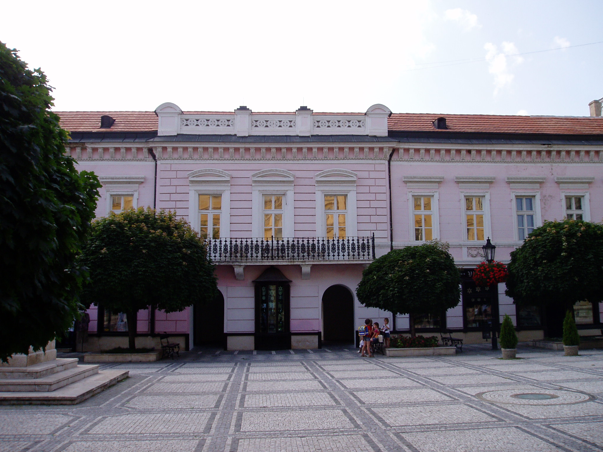 Nyilvános 1475 | 5540 | Komárom (Komárno). Klapka tér 9. Zichy-palota | A Klapka tér legnagyobb épülete a volt Zichy–palota. Zichy Miklós gróf, szabolcsi főispán építtette a XVII. század második felében. Eredetileg barokk stílusú volt, de miután a 1763-as nagy komáromi földrengés romba döntötte, klasszicista stílusban épült újjá, két épületszárnnyal bővülve. Udvarának végén az 1800-as évek elejétől 1827-ig emeletes épület állt, ennek emeleti részén tartották a táncmulatságokat és a színházi előadásokat. Az első hivatásos magyar színtársulat Komáromban Benke József és Kemény János vezetésével lépett fel 1811 májusában (ők a második pesti színtársulatból váltak ki). A társulatban ott volt Balogh István, Déry István, Láng Ádám, Murányi Zsigmond, Murányiné Lefèvre Teréz és a pályája legelején levő, tizennyolc éves Scheckenbach (Schenbach) Róza, aki később Déryné Széppataki Róza néven vált a magyar játékszín történetének állócsillagává. Legközelebb Balogh István székesfehérvári társulata jutott el Komáromba, valamikor 1813 és 1815 között. Szinnyei József szerint ennek a társulatnak Katona József is tagja volt, s Idegen művésznéven fellépett itt a Hamlet címszerepében és saját, Luca széke című darabjában. 1819 októberében Kilényi Dávid kecskeméti társulata érkezett a városba. Előadásaikról Ásvay Jókay József, Jókai Mór édesapja tudósított a helyi sajtóban. A közelmúltban a Zichy–palota udvarán építették ki az ún. Európa udvart. A helyi viszonylatban gigantikus méretű vállalkozás célja, hogy élőben mutassa be harmincöt európai ország építészetét. A városrész egyben Komárom új szolgáltató központja is, üzletekkel, éttermekkel, kávézókkal, valamint egy föld alatti bevásárlóközponttal. A palota első emeletén (bejárat a Szentháromság–szobor melletti kapun) a város két híres szülötte, Jókai Mór és Lehár Ferenc emlékkiállítása látható. Különösen a Jókai-kiállítás gazdag eredeti relikviákban. A fénykép 2005. júliusában készült. Felh.irod.: www.komarno.sk Mácza Mihály: Komárom nevezetességei. Pozsony, Madách-Posonium, 2002 Szénássy Zoltán: Rév–Komárom. KT Kiadó, 1998 Tóth László: "...miként hajdan az apostolok" : a komáromi magyar színjátszás története. Dunaszerdahely, Lilium Aurum, 1997 |