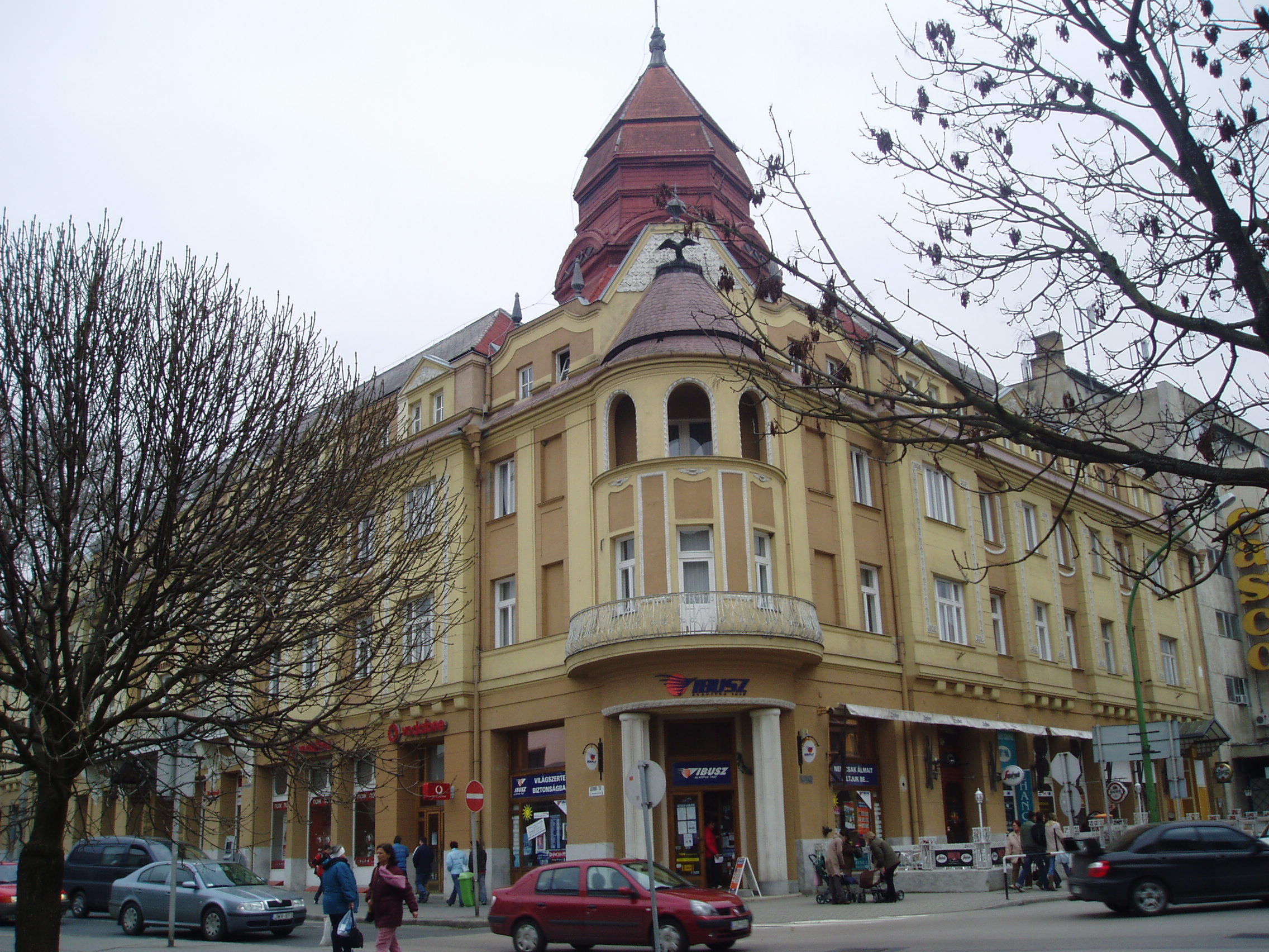 Nyilvános 1574 | 3714 | Széchenyi tér 5. Dorottya üzletház | A sétálóutca (Fő utca) végén az 1980-as években alakították ki a Széchenyi Istvánról elnevezett teret. Itt áll a Dorottya Üzletház szecessziós palotája, amelyet 1911-ben emeltek Baumöhl Leó tervei alapján. Eredetileg szálloda volt, amely a Turul nevet viselte. Sarki bejárata felett ma is látható a turulmadár. A szállodában annakidején több nevezetes személyiség is megszállt: Kodály Zoltán, Móricz Zsigmond, Áprily Lajos, Kassák Lajos és mások. A kaposvári villájában (lásd: Kaposvár, Róma–hegy) élő Rippl–Rónai József festőművész gyakran hallgatta itt kedves cigányprímása, Szimplicisszimusz (Barcza József) muzsikáját. Az első világháború éveiben, amikor a nem sokkal korábban megnyílt színház (lásd: Kaposvár, Rákóczi tér 1.) épületében vöröskeresztes kórház működött, itt is tartottak színházi előadásokat. Az épületben ma a Dorottya Üzletház működik. Farsang idején háromszáz fő befogadására alkalmas dísztermében rendezik az immár hagyományos Dorottya–bált. A fénykép 2006 márciusában készült. Felh. irod.: Kaposvár és környéke. Kaposvár, Infomark, 2002 |