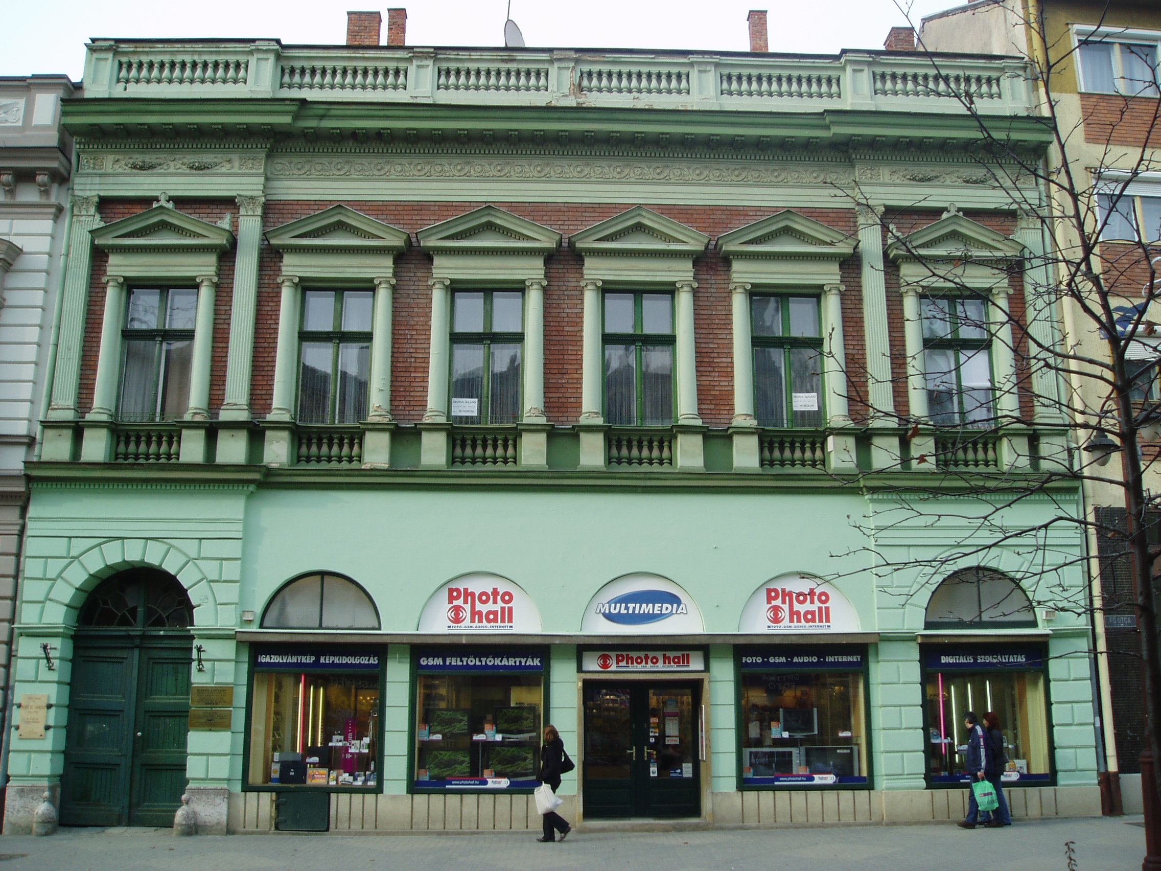 Nyilvános 1421 | 2118 | Kaposvár, Fő utca 5. | Kaposvár belvárosának épületeit nagyrészt a XIX. század második felében és a XX. század első két évtizedében emelték. A döntően eklektikus és kisebb számban szecessziós stílusú épületek nem képviselnek kiemelkedő építészeti értéket, de együttesen sajátos hangulatú utcaképet alkotnak. A Fő utca 5. számú épület a Bereck család háza volt. Mint a homlokzatán elhelyezett emléktáblán is olvasható, ebben a házban élt Bereck Sándor (1856-1945), aki több, mint négy évtizeden át a város főmérnöke volt. Ő tervezte az eklektikus stílusú Kálvária kápolnát (Kaposvár, Kálvária u. 15.). A fénykép 2006 márciusában készült. Felh. irod.: Kaposvár és környéke. Kaposvár, Infomark, 2002 |