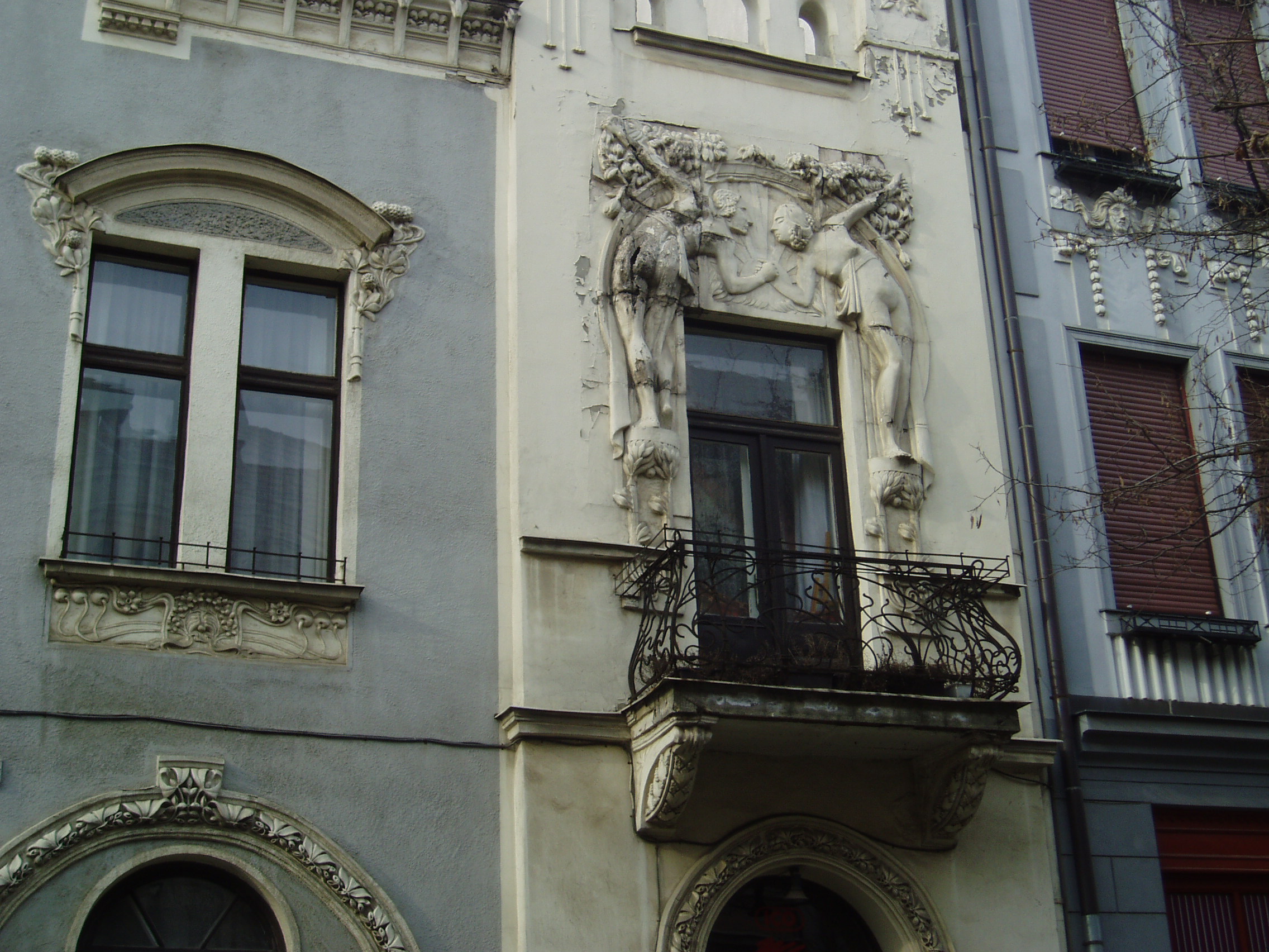 Nyilvános 1439 | 2712 | Kaposvár, Kontrássy utca 4. | Kontrássy Ferenc ügyvéd vagyonát a városra hagyva tette lehetővé a róla elnevezett utca megnyitását. A város legszebb szecessziós épületei találhatók itt. A 4. számú ház a magyar szecesszió kiemelkedő műve, 1912-ben épült. Homlokzatát Csikász Imre veszprémi szobrászművész készítette. A város lakói között annakidején nagy felháborodást keltett a meglehetősen hiányos öltözékű, Ádámot és Évát ábrázoló homlokzati díszítés... A fénykép 2006 márciusában készült. Felh. irod.: Kaposvár és környéke. Kaposvár, Infomark, 2002 Látnivalók Somogy megyében. Miskolc, Well-PRess, 2000 /Vendégváró/ |