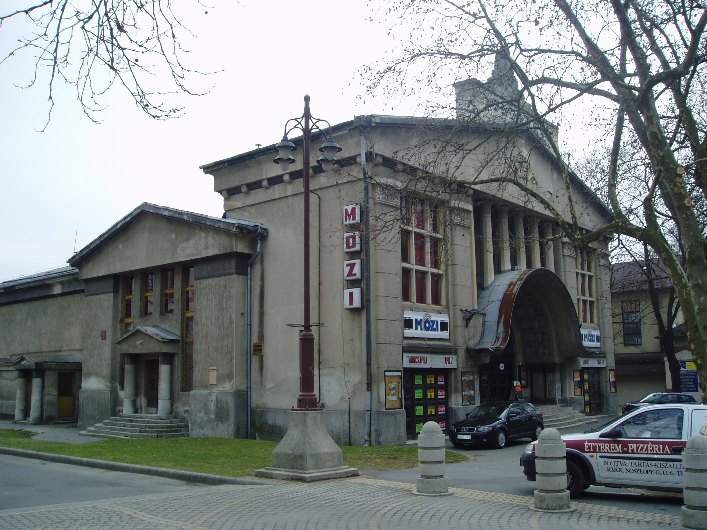 Nyilvános 1400 | 2109 | Kaposvár, Noszlopy Gáspár utca 5. | A Szivárvány mozi (ma Szivárvány Zeneház) szecessziós stílusú épületét 1927/28-ban építették Lamping József tervei alapján. Az épület belseje különösen díszes: növényeket ábrázoló festmények magyaros motívumokkal, mennyezetén pedig az egyiptomi, szárnyas napkorong látható. A fénykép 2006 márciusában készült. Felh. irod.: Kaposvár és környéke. Kaposvár, Infomark, 2002 Látnivalók Somogy megyében. Miskolc, Well-PRess, 2000 /Vendégváró/ |
