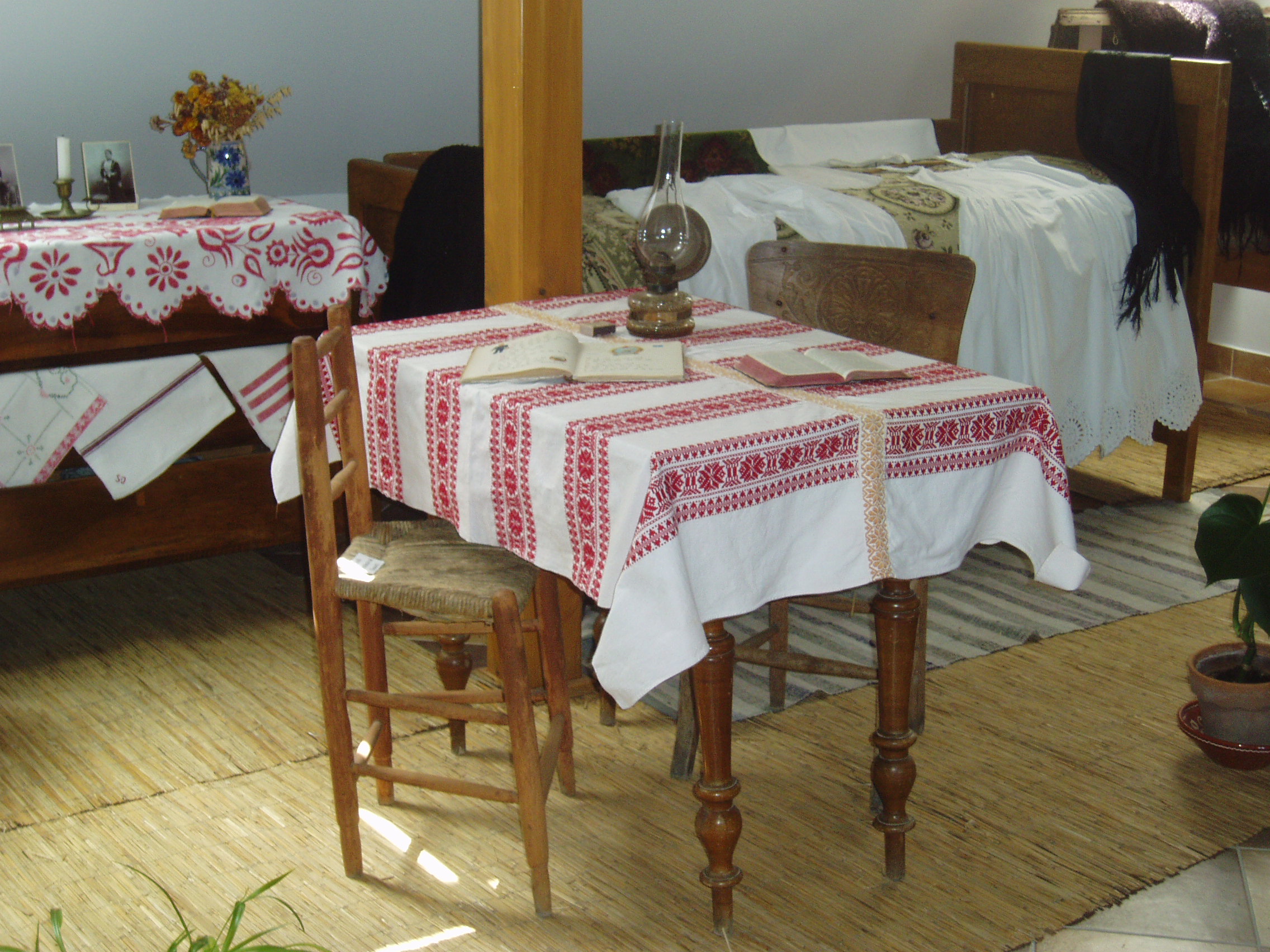 Nyilvános 1476 | 2243 | Fonyód, Bartók Béla utca 3. Természetvédelmi és Helytörténeti Múzeum | A fonyódi Várhegyen kialakult Bélatelephez tartozó, a Balaton egyik legszebb panorámájú helyén álló villát az orvosi doktorátussal rendelkező, többek között Kelet-kutatóként is számon tartott lászlófalvi Velics Antal (1875-1915) építtette az 1900-as évek elején. Ebben a villában töltötte 1916 és 1917 nyarát Szinyei Merse Pál, hazánk egyik legkiválóbb festőművésze. Balatoni tartózkodása idején hozzávetőleg tíz fetményt alkotott. Az épület az 1980-as évek végéig moziként üzemelt. Felújítása után, 2004-ben nyílt meg termeiben a fonyódi Természetvédelmi és Helytörténeti Múzeum. Benne a Fonyód történetét és néprajzát bemutató állandó kiállítás mellett időszaki kiállításokat is rendeznek. A képen a néprajzi kiállításrész látható. A fénykép 2007 júliusában készült. Felh. irod.: http://muzeum.fonyod.hu/ |