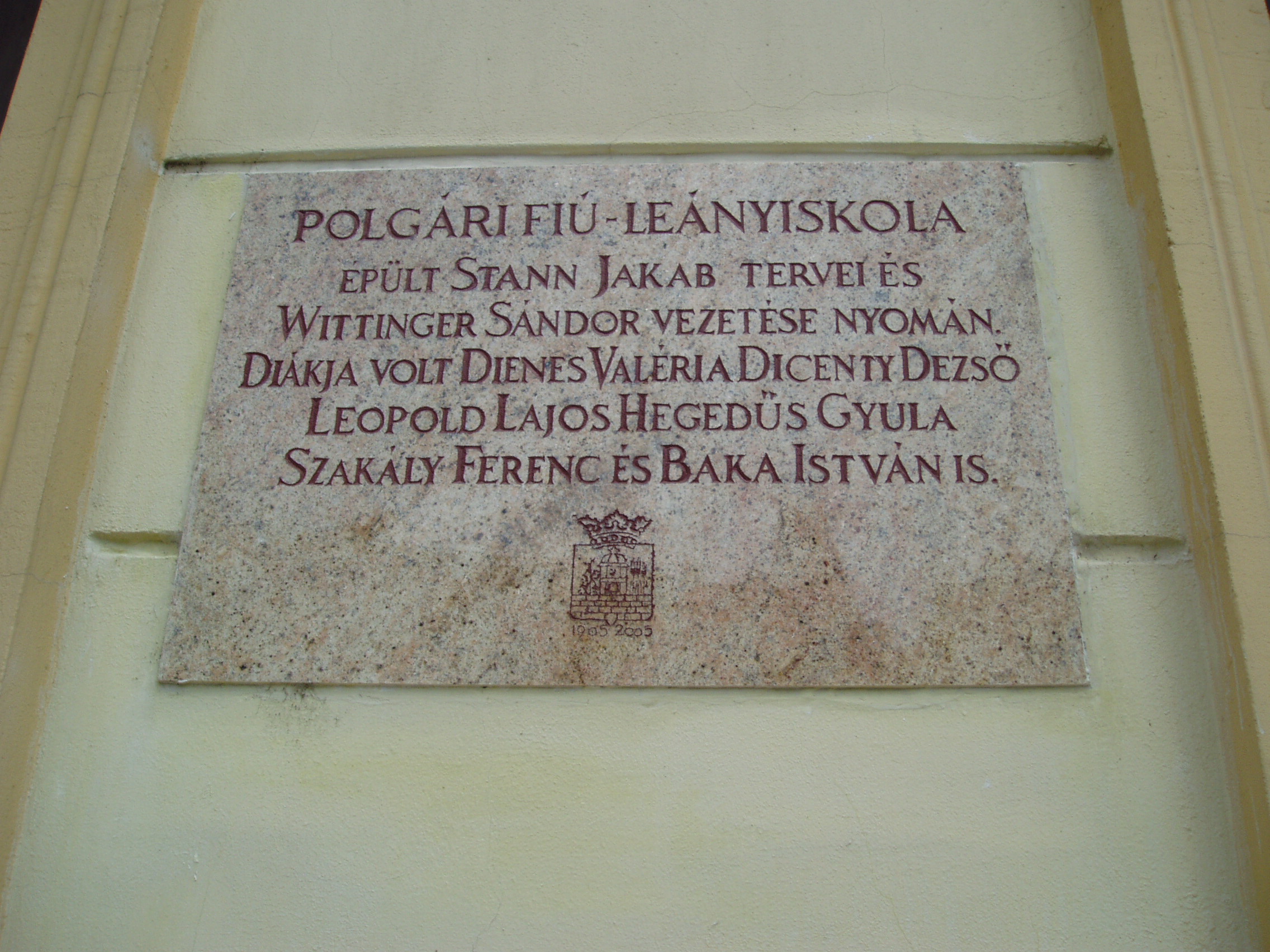 Nyilvános 1465 | 2194 | Szekszárd, Garay tér 9. | Az egykori polgári fiú- és leányiskola 1876-ban épült koraeklektikus stílusban Stann Jakab tervei szerint. Mint a homlokzatán elhelyezett emléktáblán is olvasható, több neves diák tanult itt, többek között Dienes Valéria filozófus, az orkesztika megalapítója (lásd még: Szekszárd, Babits M. u. 17.), Szakály Ferenc történész és Baka István író. A fénykép 2006 júliusában készült. Felh. irod.: http://www.szeki.hu/turista/kalauz/magyar/tu000063.htm |