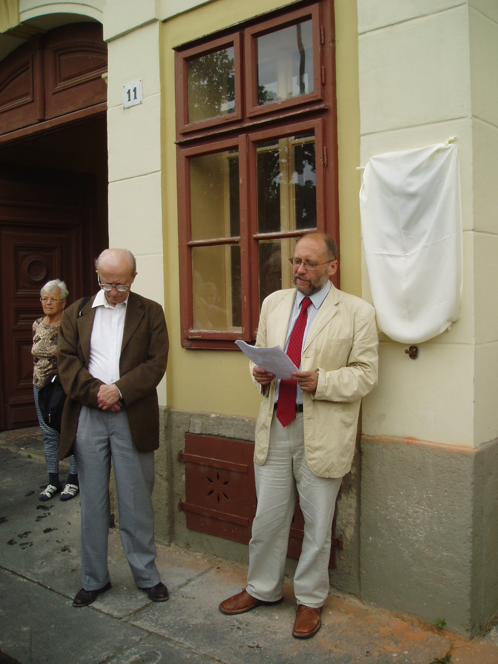 Nyilvános 2484 | 5494 | Strém Kálmán emléktáblájának felavatása 2007. május 28-án Nagykanizsán, Erzsébet tér 11. számú szülőházán. A táblát a Magyar Haydn Társaság állította, az eseményt a Kanizsai Klasszikusok Kulturális és Közhasznú Alapítvány rendezte. | A képen Földes Imre zenetörténész és az avatóbeszédet mondó Malina János zenetörténész, a Magyar Haydn Társaság elnöke. Strém Kálmán zeneszociológus, hangversenyrendező, a legjelentősebb hazai koncertrendező iroda vezetője 1934. május 23-án született Nagykanizsán az Erzsébet tér 11. számú épületben, az ún. Gutmann–palotában. Évtizedekig tevékenykedett az Országos Filharmóniánál, ahol a vidéki osztály vezetőjeként felbecsülhetetlen értékű munkát végzett. 1978-ban a Zeneművész Szövetség ügyvezető titkára lett, ezen a posztján húsz évig tevékenykedett. Közben olyan, a magyar zenei élet húsbavágó kérdéseiről publikált nagyhatású könyveket, mint a Hol vannak a magyar vonósok?, a Lemorzsolódás a zeneiskolákban és a Vitairat a magyar zenei művelődésről. A magyar zenei élet jobbítására közreadott javaslatai közül a — mára sajnos megszüntetett — zenei menedzserképzést ő indíthatta el a Zeneakadémián. A menedzselést nemcsak tanította, hanem a rendszerváltást követően maga is vállalkozni kezdett, s létrehozta a Strém Koncert Kft.-t, amely hamarosan a legnagyobb nem állami hangversenyrendező irodává vált. Strém Kálmán e minőségében is példamutató, áldozatos munkát végzett. Tevékenységének egyik fő iránya a magyarországi Haydn–kultusz erősítése volt: megszervezte és működtette a Fertőd–Eszterházai Nyári Fesztiválokat. Hangversenyrendezői munkájának másik pólusán a kortárs zene állott: ő hívta életre Balatonföldváron a Földvári Zenei Napokat, ahol igaz összművészeti kulturális műhelyt hozott létre (sajnos, mára ez a rendezvénysorozat is megszűnt). Hangversenyeit mindig a legnagyobb gondossággal, európai ízléssel rendezte meg. S bár ő maga nem volt muzsikus, de — mint egy tisztelője megfogalmazta — a hangversenyrendezést művészi fokon művelte. 2005. november 27-én bekövetkezett hirtelen halálával egy korszak zárult le a magyar zenei életben. Batta András, a Zeneakadémia rektora a következő szavakkal méltatta őt: "Olyan fajta ember volt, akiről azt hittük soha nem öregedik meg és nem fárad el. Élete volt a zene és a zene közvetítése. Évente százával szervezett, rendezett hangversenyeket, állt ki jó ügyek mellett, fedezett fel fiatal tehetségeket, adta meg a tiszteletet idős művészeknek." Halála óta már két emléktáblát avattak tiszteletére: Székesfehérváron a Szent István Művelődési Központban és a budapesti Liszt Ferenc Zeneművészeti Egyetemen. Most nagykanizsai szülőházára került fel emléktábla, az emlékező beszédet Malina János zenetörténész, a Magyar Haydn Társaság elnöke tartotta. Az eseményt — természetesen — hangverseny is követte a Jézus Szíve templomban, amelyen Földes Imre tanár úr idézte fel Strém Kálmán alakját a közönség előtt. A hangversenyen közreműködtek: Horváth Anikó (csembaló), Kelemen Barnabás (hegedű), Kokas Katalin (hegedű és brácsa), Kokas Dóra (cselló). |