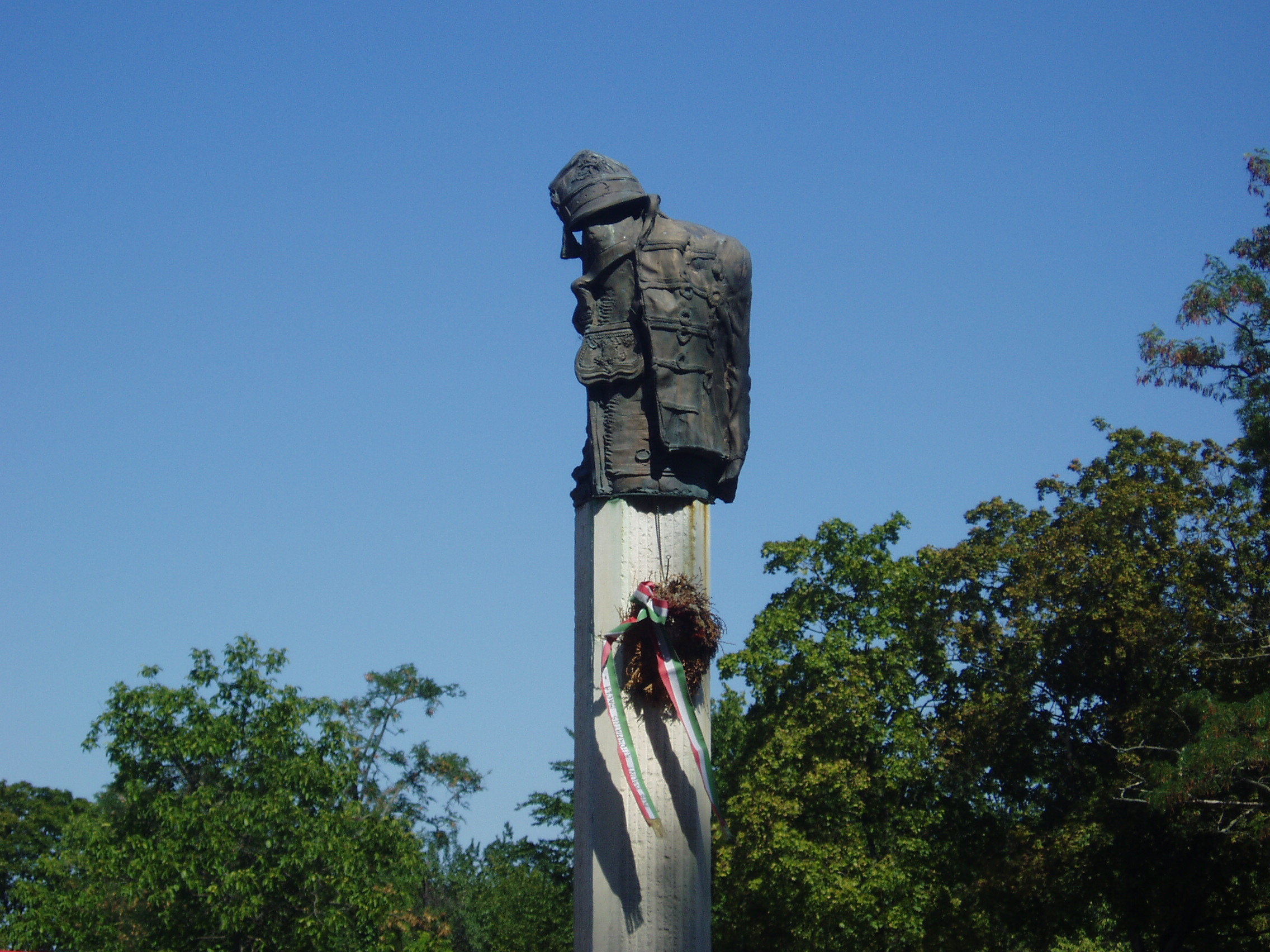 Nyilvános 908 | 1483 | Gyula, Várkert: Honvédtiszti emlékhely | A szabadságharc végén, 1849 augusztusában szomorú esemény színhelye lett Gyula. A világosi fegyverletételkor a magyar sereg tisztjei megtarthatták oldalfegyvereiket, s az oroszok Sarkadra, majd Gyulára kísérték őket. Az oroszok tüntetően jól bántak a magyar tisztekkel: eltávolították a grófi kastély elől az osztrák őröket, s együtt mentek a Korona vendéglőbe, ahol a cigánnyal a Rákóczi indulót és a Kossuth-nótát huzatták, senki nem gondolt arra, hogy a foglyok valaha is az osztrákok kezébe kerülnek. A mostani Groza park területén elhelyezett fogolytábort alig őrizték, többen polgári ruhát szerezve el is menekültek. A hagyomány szerint az araddi tizenhárom vértanú közül kilenc volt Gyulán: Aulich Lajos, Damjanich János, Kiss Ernő, Knezich Károly, Lahner György, Lázár Vilmos, Leiningen-Westenburg Károly, Nagy-Sándor József, Török Ignác. A tábornokokat magánházaknál szállásolták el, amelyeken ma emléktábláik olvashatók. Közülük csupán Lahner és Damjanich volt köteles a várkapu melletti cellában tölteni az éjszakát. Augusztus 21-én Rüdiger tábornok hozta Paszkievics parancsát, hogy a honvédtiszteket le kell fegyverezni és át kell adni az osztrákoknak. Augusztus 23-án a vár és a kastély közötti téren megkezdődött az 1300 honvédtiszt lefegyverzése. Másnap az oroszok átadták őket az osztrákoknak, akik 200 szekérrel szállították őket Aradra. E szomorú történelmi esemény 140. évfordulója alkalmából alakították ki 1989-ben a vár északi fala mögött az emlékhelyet, Máté István szobrász és Szemerei Márta építész alkotását. A posztamensen álló kilenc szobor az 1849. október 6-án kivégzett kilenc tábornokot szimbolizálja. A fénykép 2007 júliusában készült. Felh. irod.: Czeglédi Imre: Gyula útikalauz. 2. jav., bőv. kiad. Gyula, 1995 |