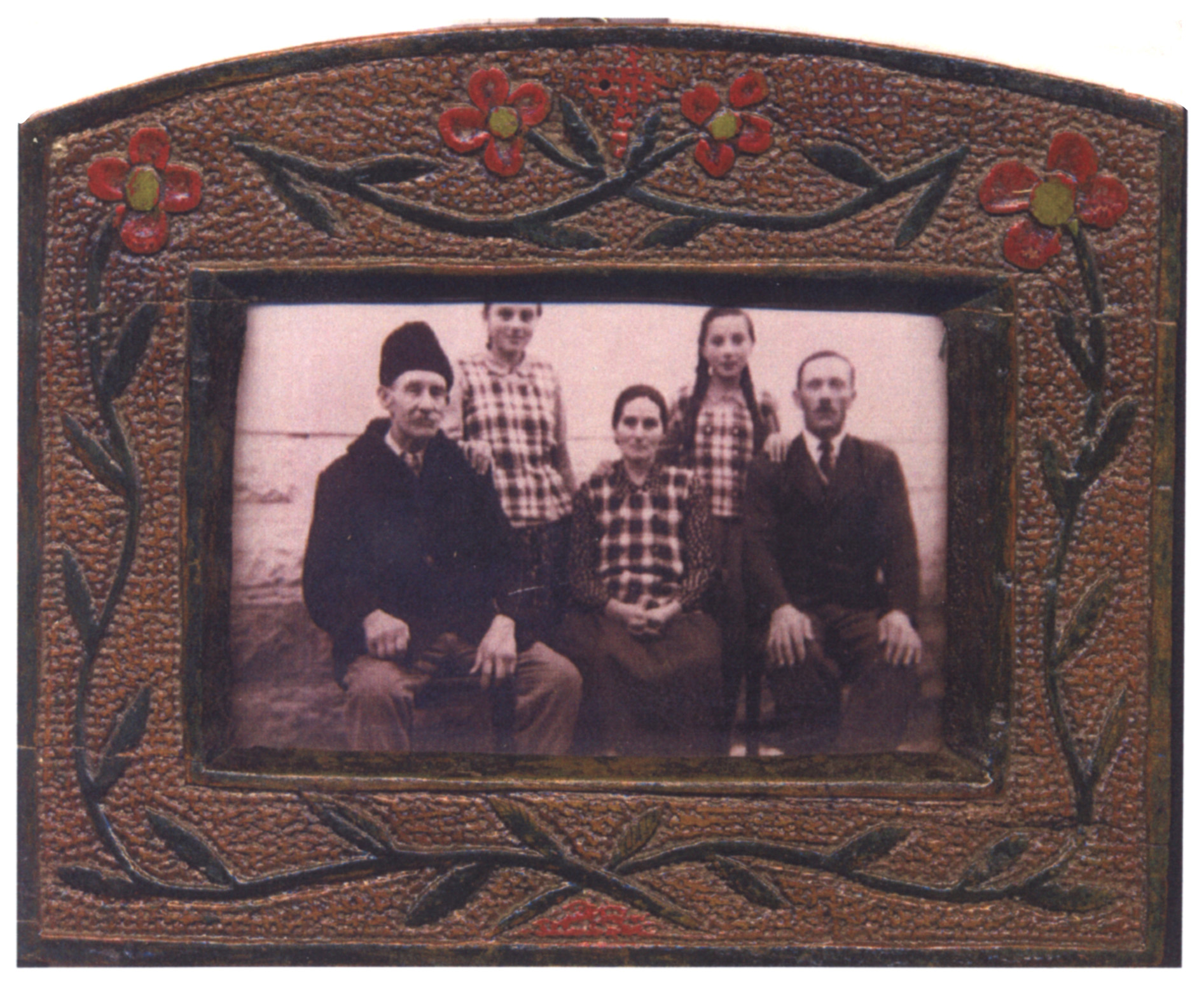 A keretet a képen baloldalt látható nagypapa, Soós Ferenc faragta