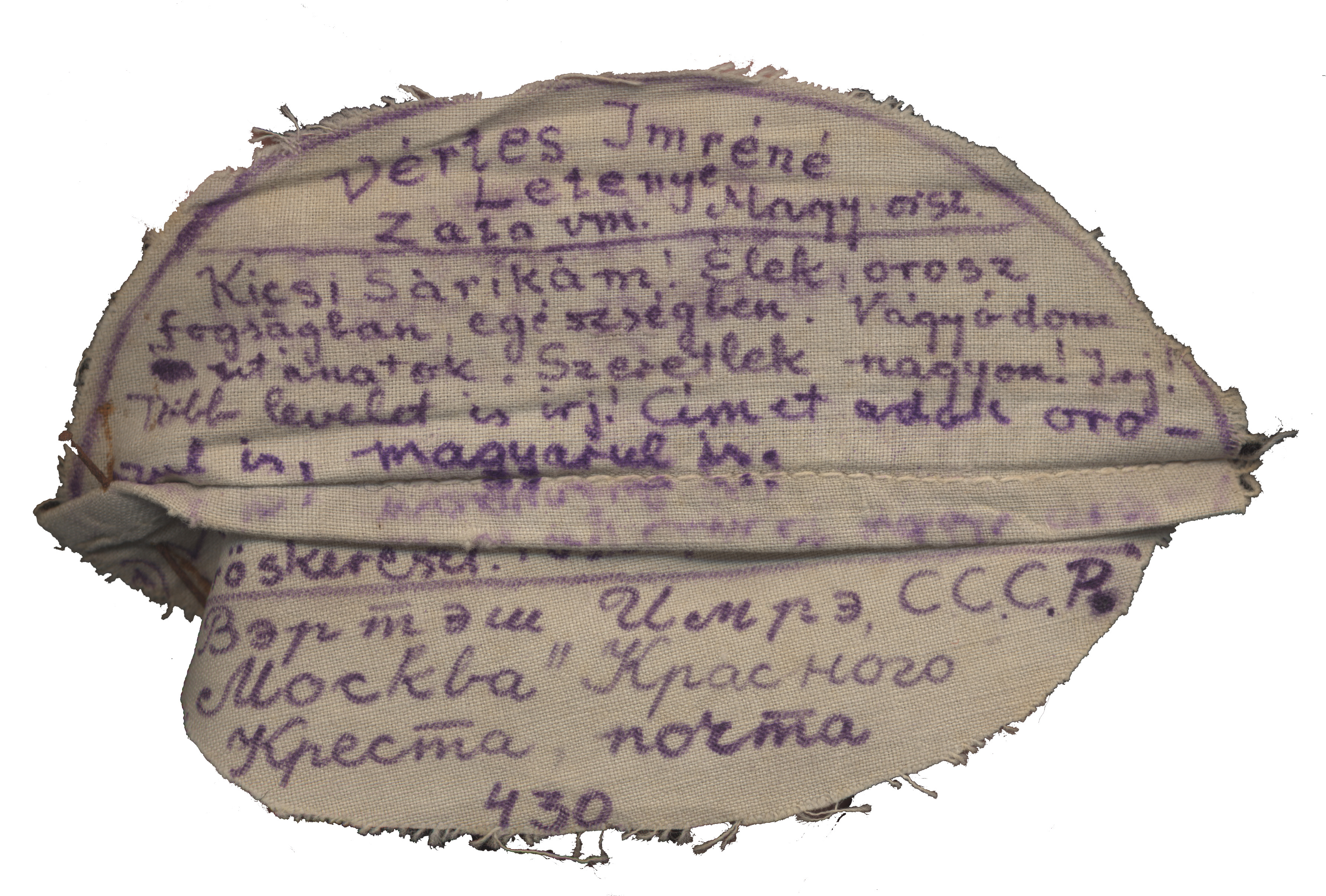 Nyilvános 2160 | 5057 | Vértes Imréné | Letenye Zala vm. Magy. orsz. Kicsi Sárikám! Élek, ororsz fogságban, egészségben. Vágyódom utánatok. Szeretlek nagyon! Írj! Több levelet is írj! Címet adok oroszul is, magyarul is. a) Vértes Imre U.R.S.S. "Moszkva" Vöröskereszt. Postafiók 430. b) ... |