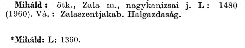 Nyilvános 2584 | 6100 | A szócikkek felismertetett szövege: | (A csillag után az 1972-es kiadású kiegészítő kötetből származó szöveg következik) Miháld: ötk., Zala m., nagykanizsai j. L : 1480 (1960). Vá.: Zalaszentjakab. Halgazdaság. *Miháld: L: 1360. A szócikkek a következő lexikonból származnak: Cím: Új magyar lexikon Közreműködő: Berei Andor (1900-1979) (szerk.) Szerz. közl.: [szerk. Berei Andor et al.] Kiadás jelzés: 2. lny. Kiadás: Budapest : Akad. K., 1961-1962 Kötetei: 1., A - C 2., D - F 3., G - J 4., K - Me 5., Mf - R 6., S - Z 7. köt., A-Z Kiegészítő kötet (1972) Kiegészítő kötet, 1962÷1980 (1981) ETO jelzet: 03=945.11 Szakjelzet: 030 Cutter: U 28 Nyelv: magyar Megjegyzés: Bibliogr. a címszavak egy részének végén |