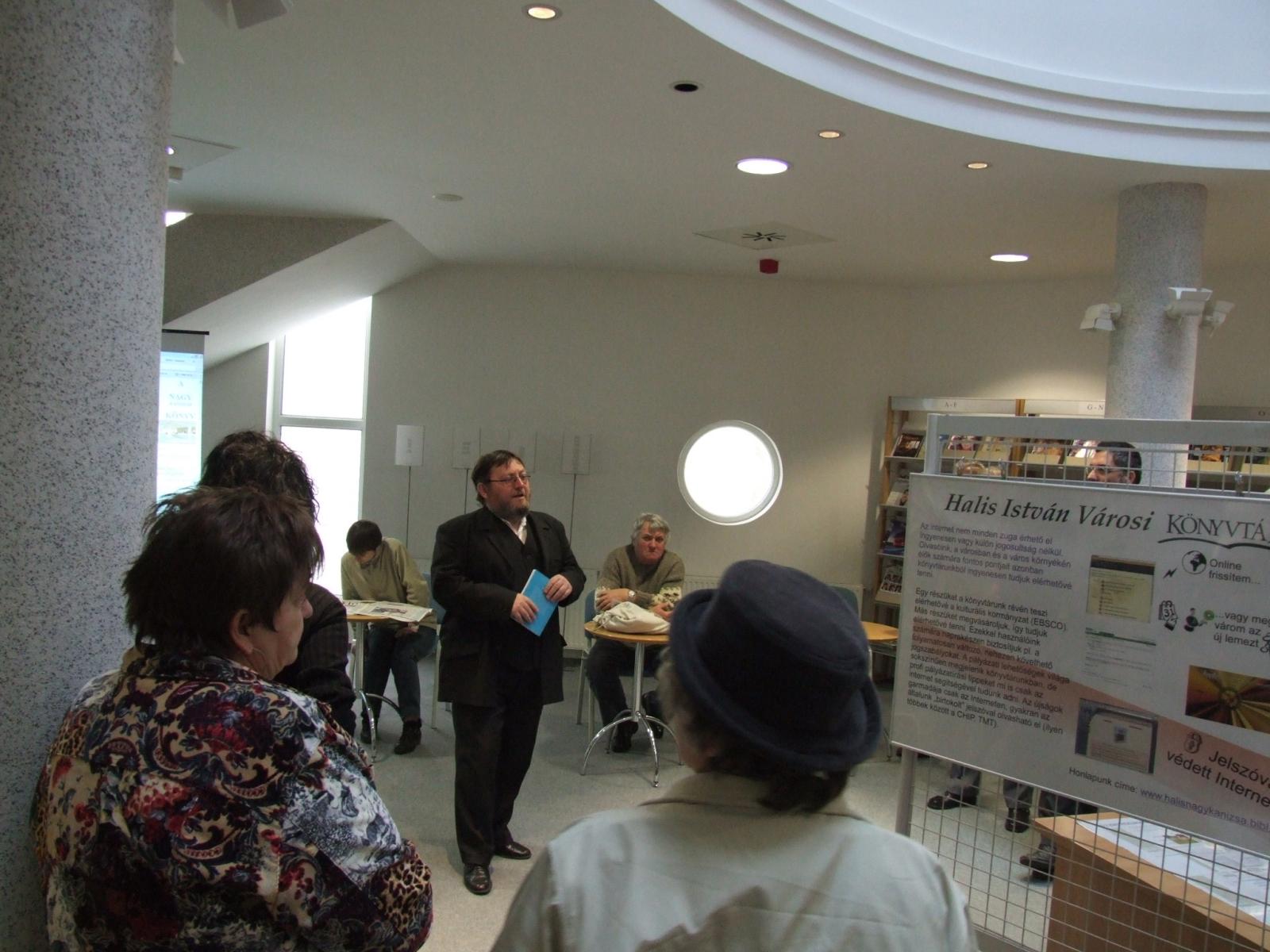Nyilvános 1886 | 4266 | 2008. január 22. 10 óra: A magyar kultúra napja a Halis István Városi Könyvtárban – A könyvtár szolgáltatásait bemutató kiállítás megnyitója | Megnyitja: Czupi Gyula igazgató Megtekinthető: 2008. február 22-ig A kiállítás eddigi poszterei az alábbi cím alatt tekinthetők meg: http://www.halisnagykanizsa.bibl.hu/poszterek/index.htm A 2008-as Magyar Kultúra Napja további programjairól: http://www.nagykar.hu/esemenynaptar/1/1346.html |