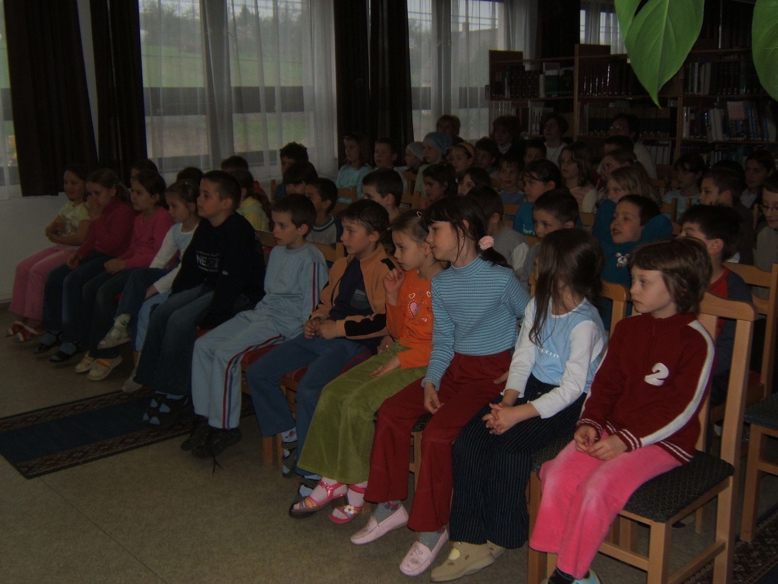 Nyilvános 1770 | 3830 | Költészet napja műsor a zalakarosi könyvtárban 2006. április 11-én. Vendégünk volt a Kardos Banda együttes, aki a kisiskolásoknak és a nagyoknak külön összeálított \"Költészet - minden formában régiektől, maiaktól\" című műsorát adta elő. | |