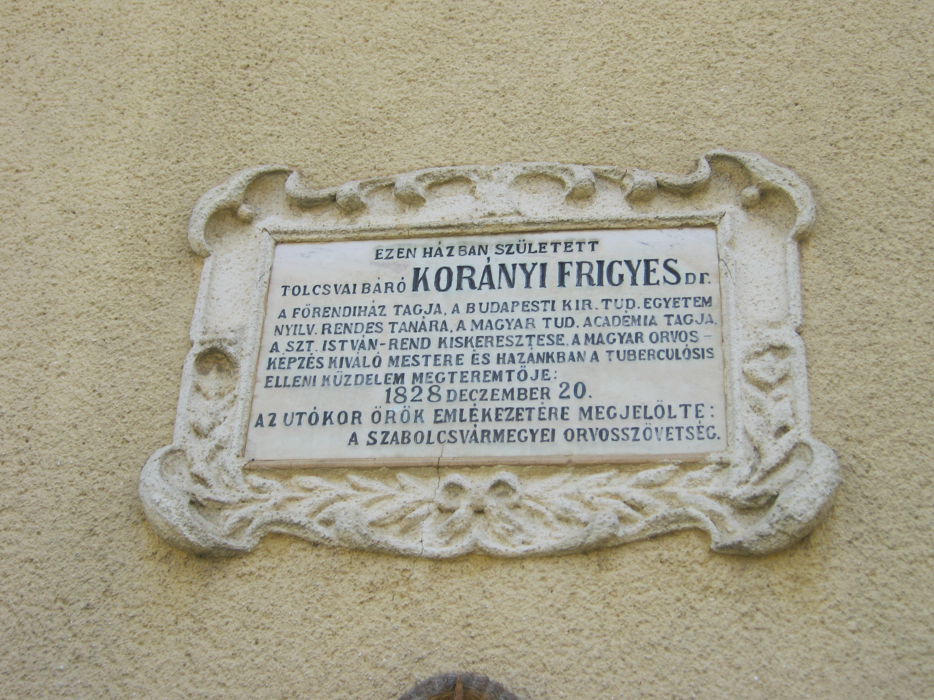 Nyilvános 887 | 1308 | Nagykálló, Szabadság tér 6. | Az 1700-as évek vége felé épült klasszicista eredetű épület Korányi Frigyes szülőháza. A magyar orvostörténet nagy alakja itt látta meg a napvilágot 1828. december 10-én. Édesapja, Kornfeld Sebald tehetős izraelita orvos volt. Korányi Frigyes 37 éves koráig Nagykállóban élt. Titkos vágya az írói pálya volt, édesapja példájára azonban orvos lett. 1848-ban apja kezdeményezésére vette fel a család a Korányi nevet s tért katolikus hitre. 1852-ben Nagykállóban kezdte meg praxisát, 1859-ben egyik alapítója volt a helyi kórháznak. Orvosi pályája a fővárosban teljesedett ki s írta be nevét az orvostörténet legnagyobbjai közé. Szülőháza 1971 óta emlékházként működik eredeti bútorokkal, relikviákkal. Felh. irod.: Harsányi Gézáné: Kálló kincsei. Nagykálló, 2007 |