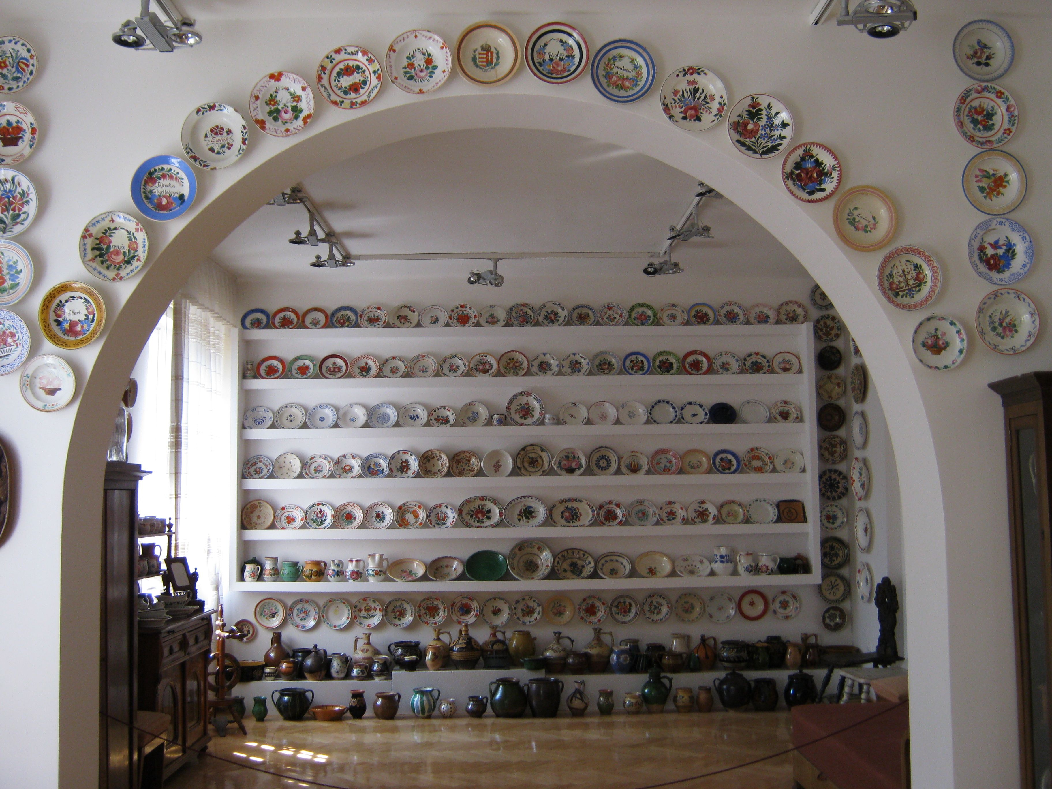 Nyilvános 1342 | 1890 | Nyíregyháza, Benczúr tér 21. Jósa András Múzeum | Magyarország egyik legrégibb múzeumát Dr. Jósa András alapította 1868-ban, akinek ma nevét viseli. Egyik állandó kiállítása a Péchy - Kovács-gyűjtemény, dr. Kovács Gyula és felesége, Péchy Mária több, mint 700 darabból álló magánygyűjteménye. Dr. Kovács Gyula nyugdíjazásáig a Debreceni Atommagkutató Intézet gazdasági igazgatója volt, felesége tanítónő. A gyűjtemény egyik részét bútorok (biedermeier szalongarnitúra, ebédlőszékek, írószekrény stb.) és ezüst evőeszközök, tálcák, gyertyatartók és más tárgyak, valamint festmények és perzsaszőnyegek alkotják. A másik rész Péchy Mária gyűjtőszenvedélyének eredménye, aki több évtizeden keresztül vásárolta, a szebbnél szebb mázas cserépedényeket, amelyek Észak-Magyarország, Erdély és az Alföld kerámiaközpontjaiban készültek. Vannak itt különböző háztartási eszközök, amelyeket egykor Péchy Mária édesanyja, nagyanyja használt: habüstök, mozsarak, sütőformák, kávédarálók. Felh. irod.: Látnivalók Szabolcs-Szatmár-Bereg megyében. Miskolc, Well-PRess, 1999 http://jam.nyirbone.hu A fénykép 2010 augusztus elején készült. |