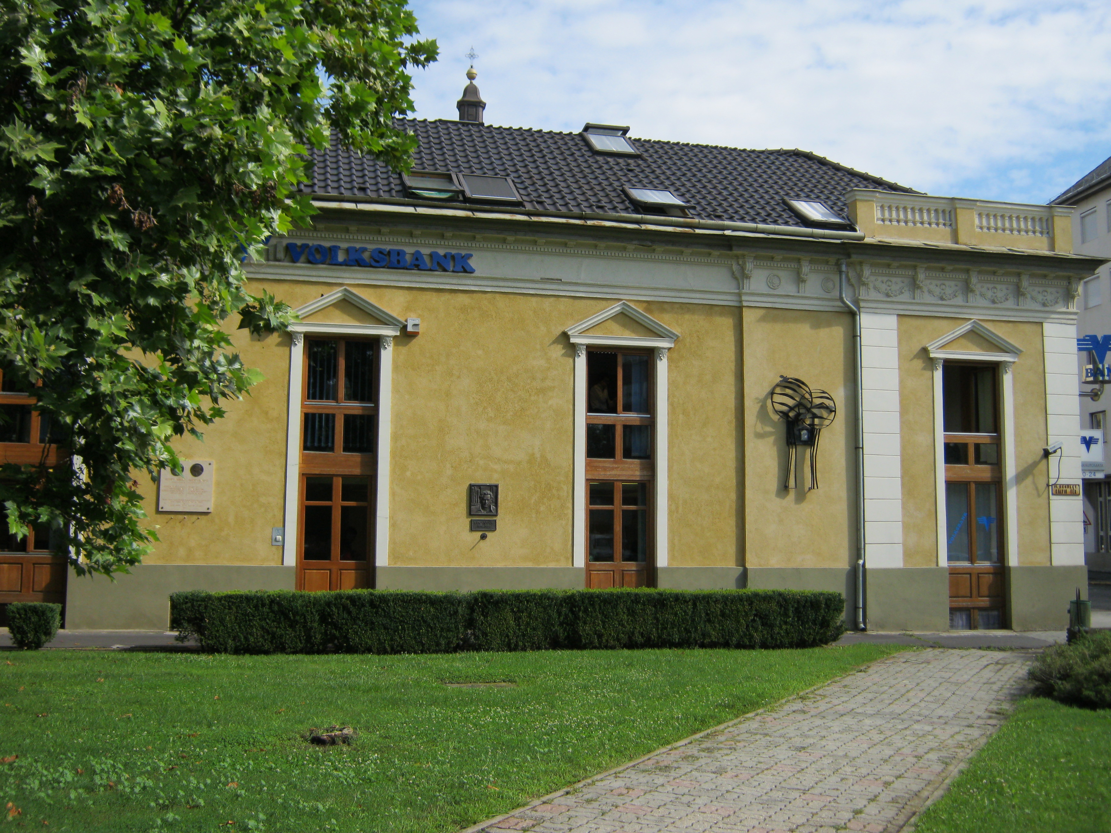 Nyilvános 1336 | 1936 | Nyíregyháza, Kálvin tér - Bercsényi utca sarok | Az épületn két emléktábla látható. Az egyik Barzó Mihálynak (1857-1909) és fiának, Barzó Endrének (1898-1953) állít emléket. Ez lehetett a családi házuk - vagy ennek helyén állt, pontosabb információkat nem találtam és tábla feliratából sem derül ki teljesen. Barzó Mihály nyíregyházi építőmester volt. Az Operaház munkálatainál építésvezetői beosztásban is dolgozott. Barzó Endre festőművész élete nagy sikerét a Barcelonában rendezett világkiállításon érte el, aranyérmet kapott. Az emléktáblát 2003. augusztus 25.-én, Barzó Mihály halálának 50. évfordulóján helyezték el. A fénykép 2010 augusztus elején készült. Felh. irod.: www.szoborlap.hu Szatmári Gizella: Barzó Endre. = Szabolcs-Szatmár-Beregi Szemle 2006, február |
