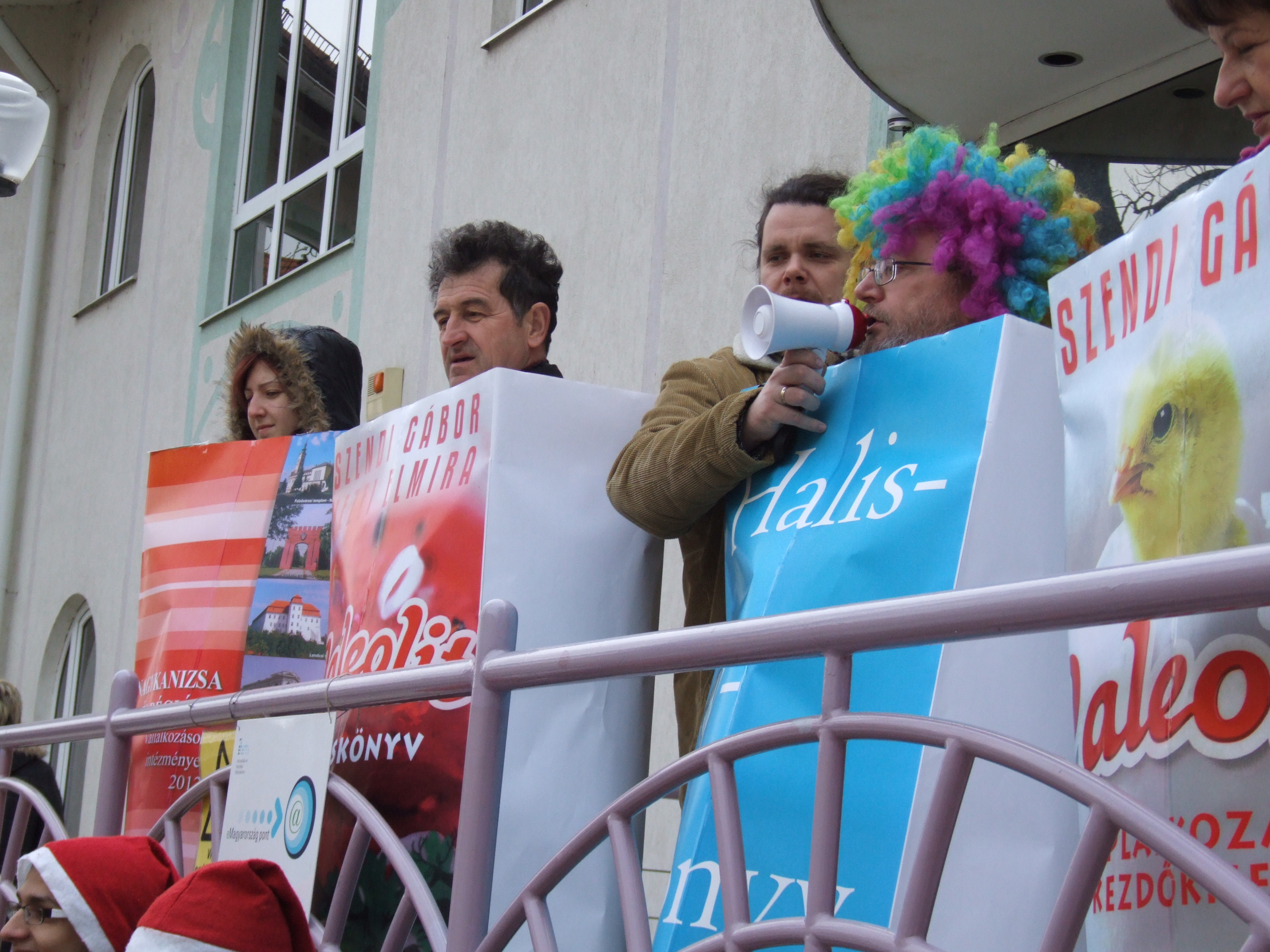 Nyilvános 1298 | 2808 | 2013. február 9. A farsangi fánkfesztiválra készülve felhívásban kértük olvasóinkat, hogy öltsék magukra kedves könyvüket. Egy „könyvespolcnyi” jelentkező vette magára kedves olvasmányát, az ő vonulásukról készültek ezek a képek. A környezetükben néhol láthatók a Nagykanizsai Gólyalábasok, akik szintén a könyvtárhoz kötődnek. A „felvonuló kötetek” a könyvtár épületében még megtekinthetők. | |