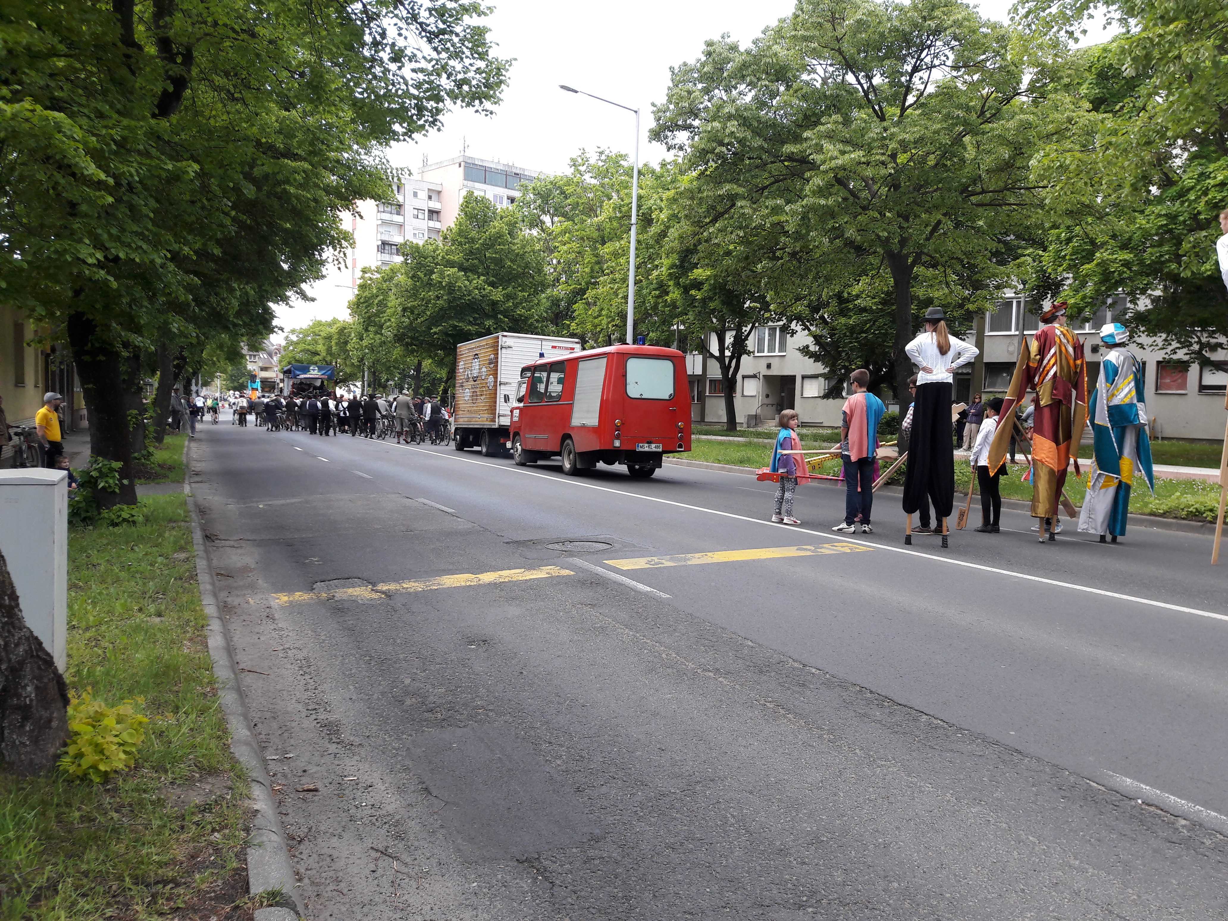 2017.04.30. Utca Tánc Fesztivál - Vonulás - Gólyalábasok, fekete kalapos táncosok, meridián tornások