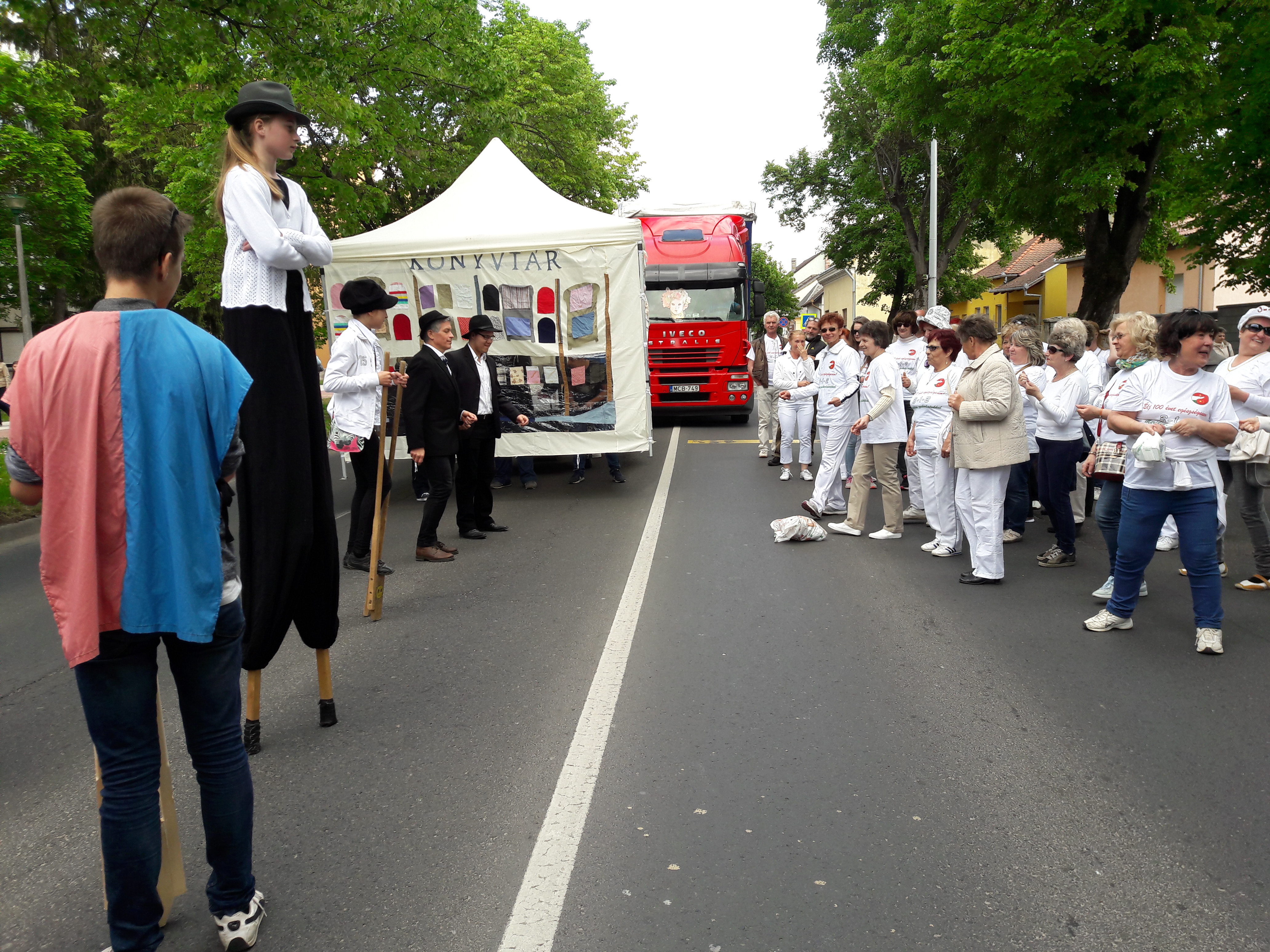 2017.04.30. Utca Tánc Fesztivál - Vonulás - Gólyalábasok, fekete kalapos táncosok, meridián tornások