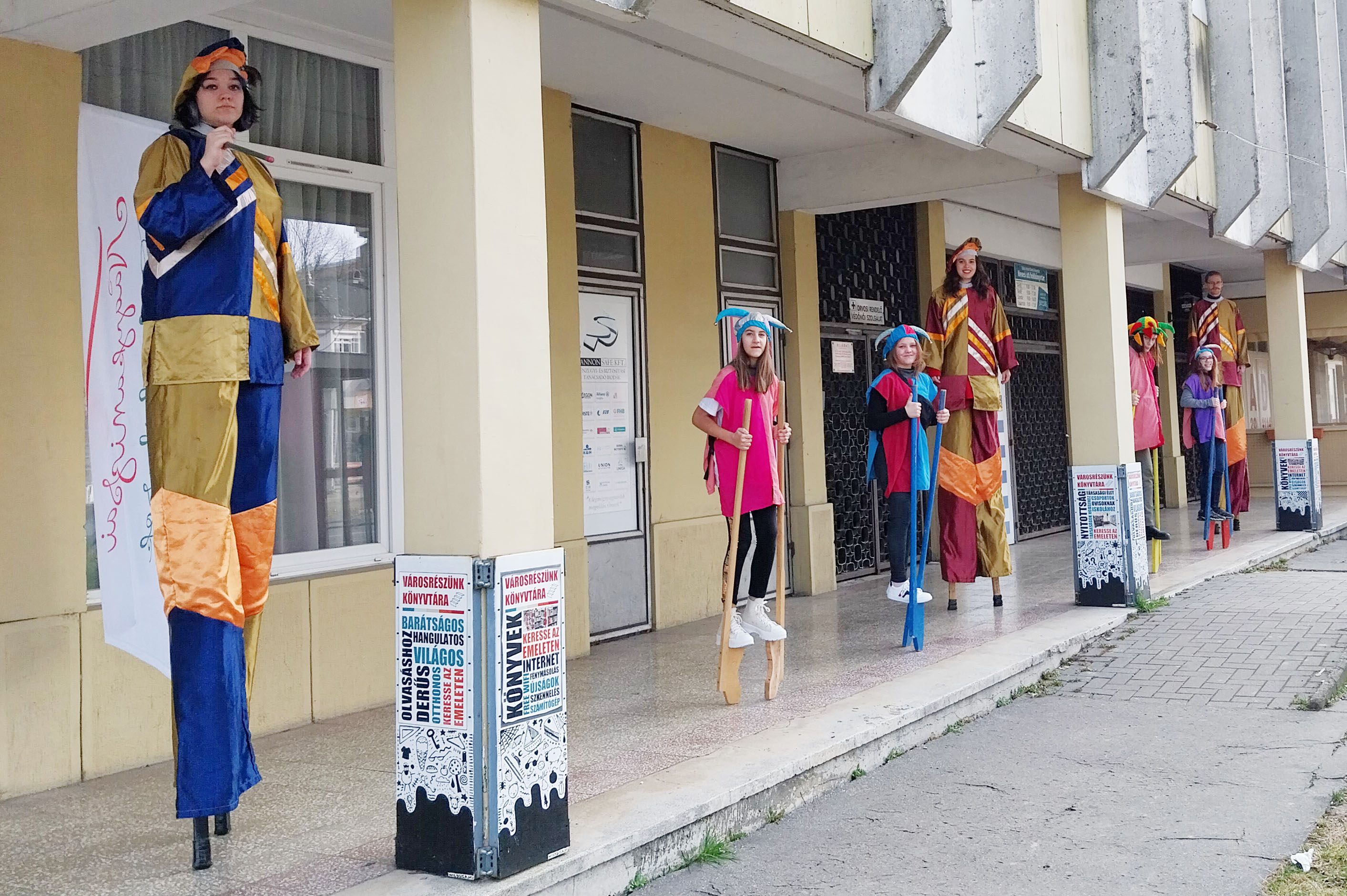 2024.02.10. Gólyalábasok a Hevesi úti fiókkönyvtár előtt