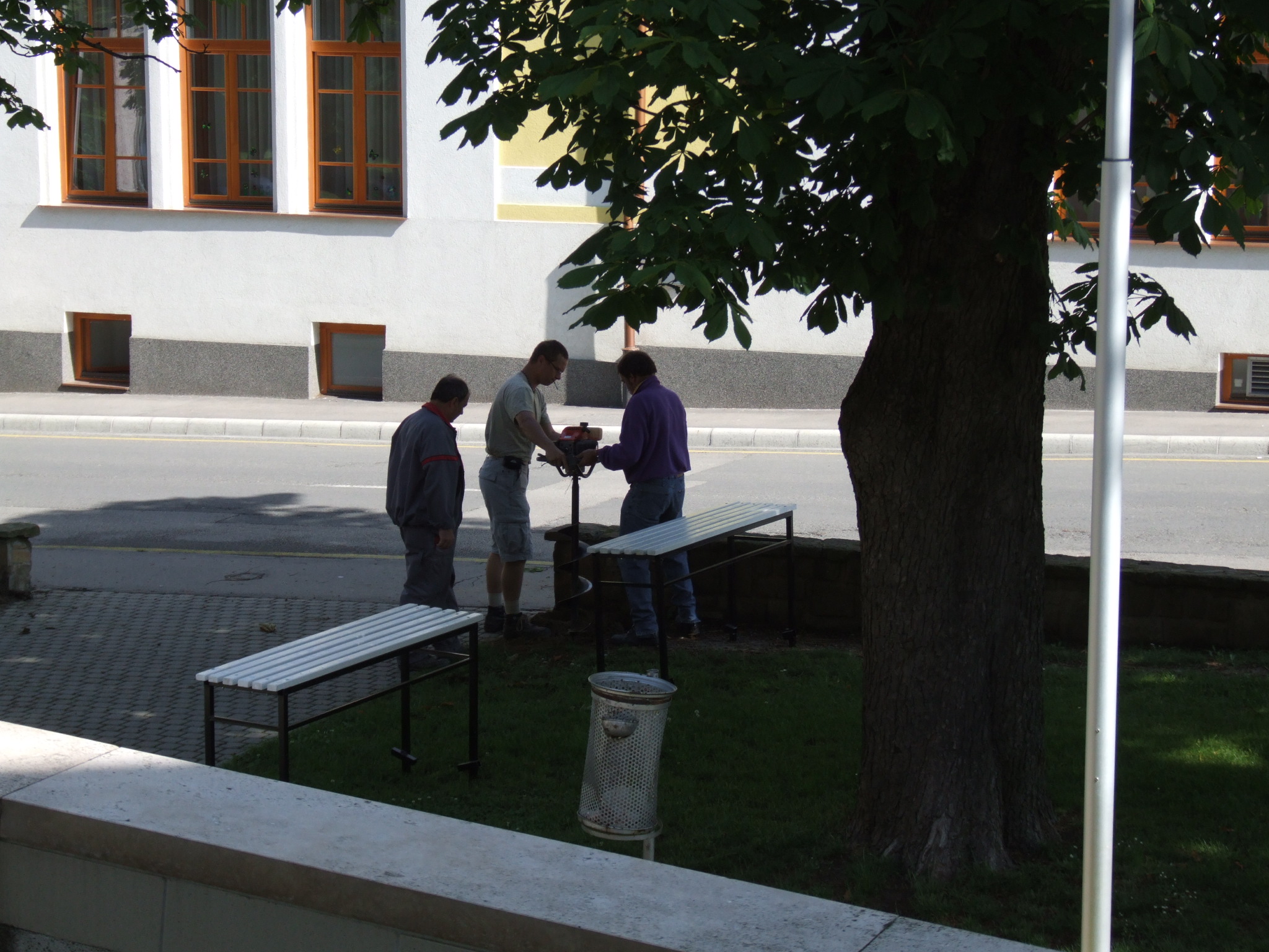 2009.06.08. Szerelik az első, fehér padokat